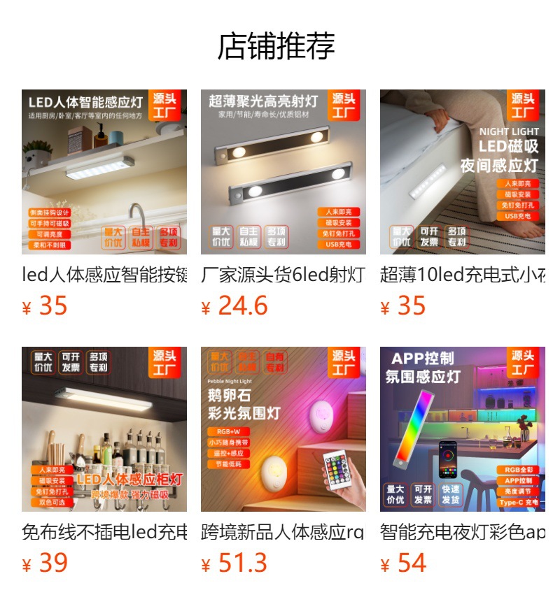 펀치 프리 충전식 인체 자동 감지 야간 조명 무선 침실 머리맡 램프 스마트 소프트 라이트 복도 통로 조명스토어 가기