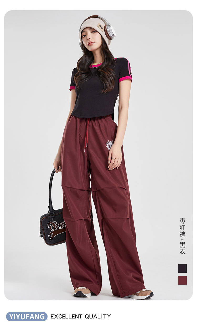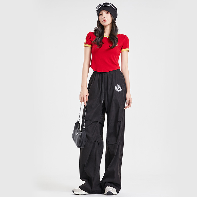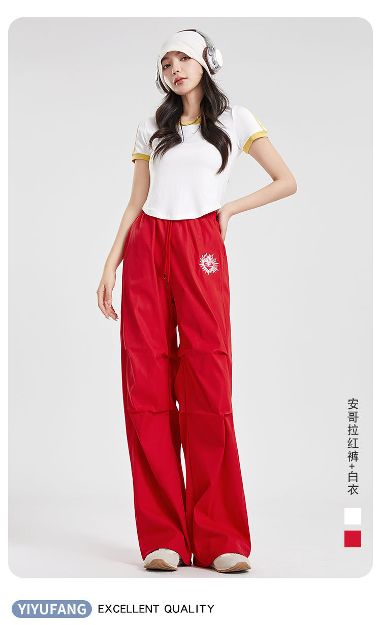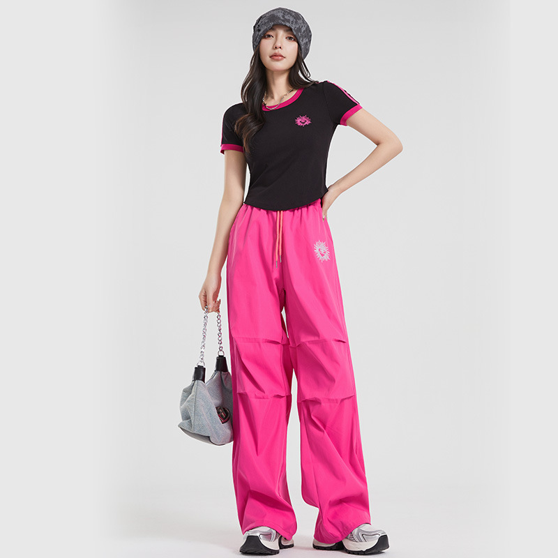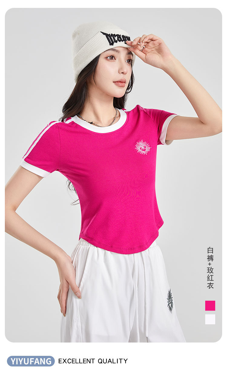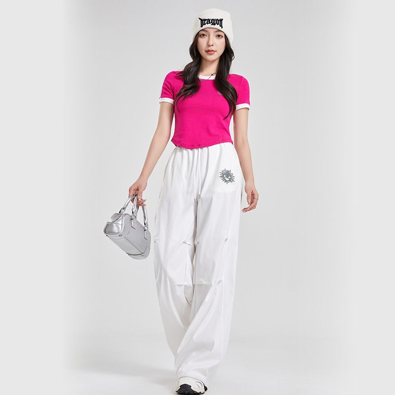 (쿨 실크 코튼) 아메리칸 스타일 숏 컬러블록 라운드넥 티셔츠 스트리트 댄스 트렌디 브랜드 낙하산부대 스포츠 캐주얼 세트 YM2515