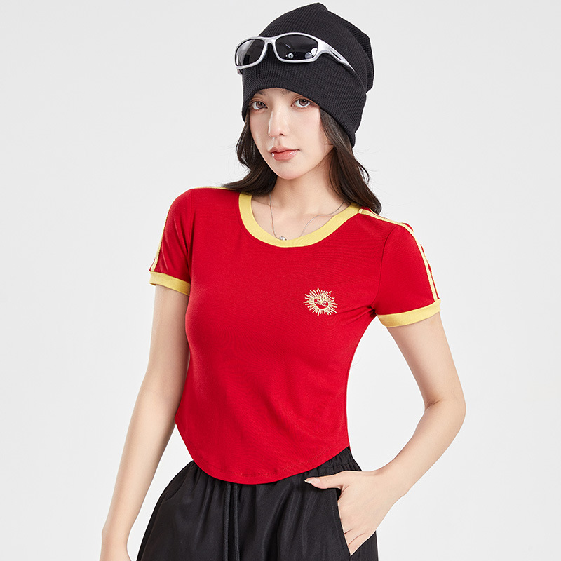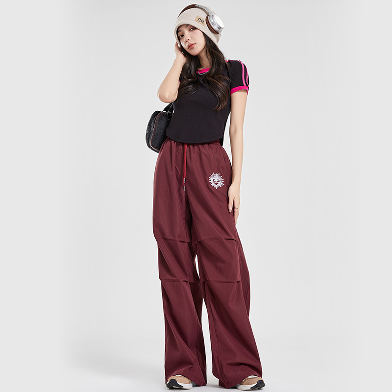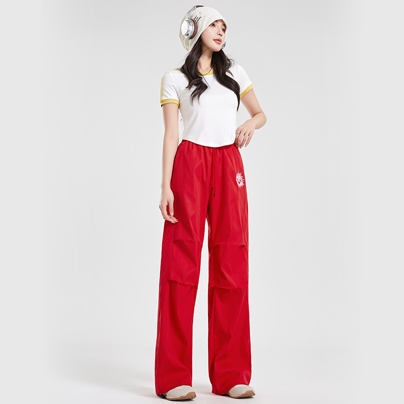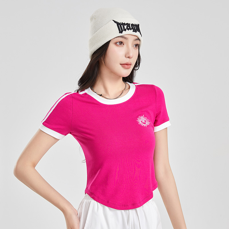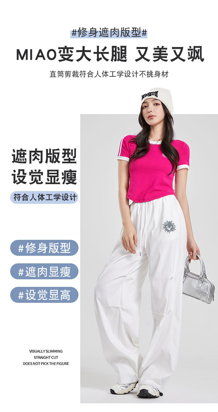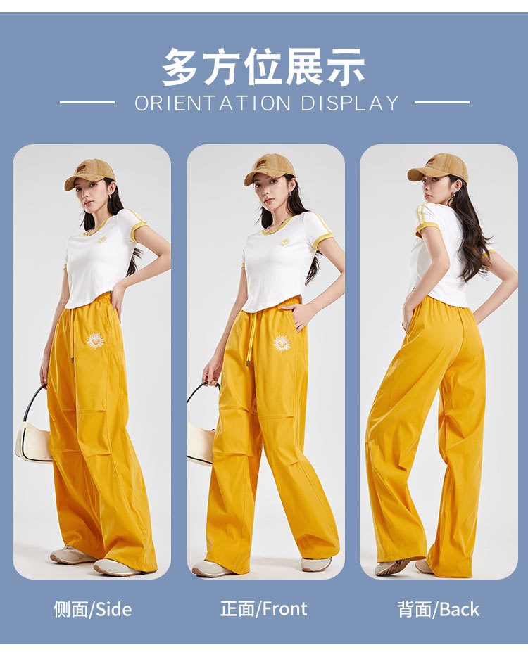 (쿨 실크 코튼) 아메리칸 스타일 숏 컬러블록 라운드넥 티셔츠 스트리트 댄스 트렌디 브랜드 낙하산부대 스포츠 캐주얼 세트 YM2515