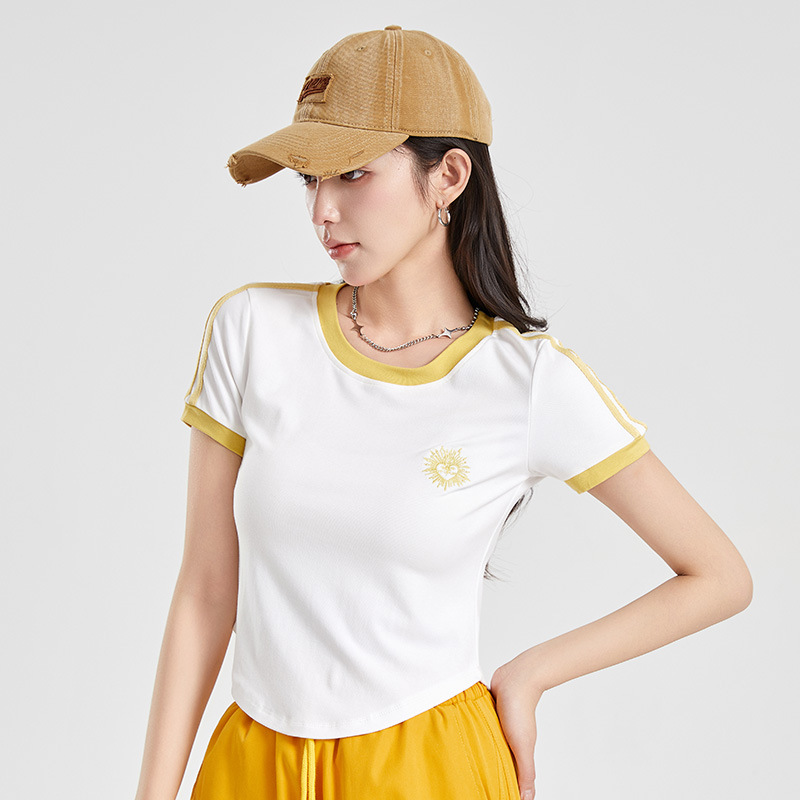 (쿨 실크 코튼) 아메리칸 스타일 숏 컬러블록 라운드넥 티셔츠 스트리트 댄스 트렌디 브랜드 낙하산부대 스포츠 캐주얼 세트 YM2515스토어 가기