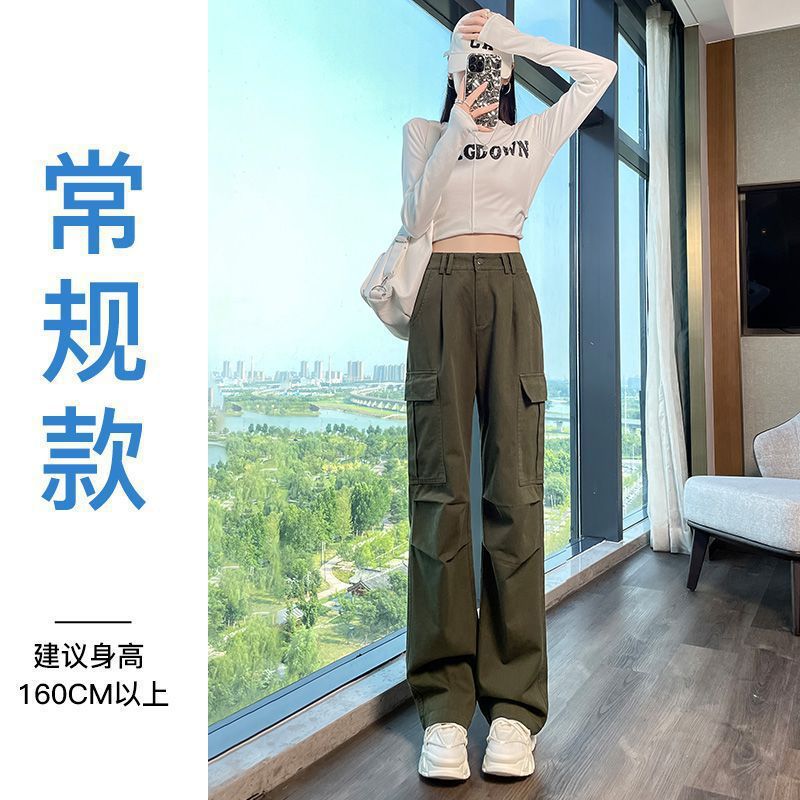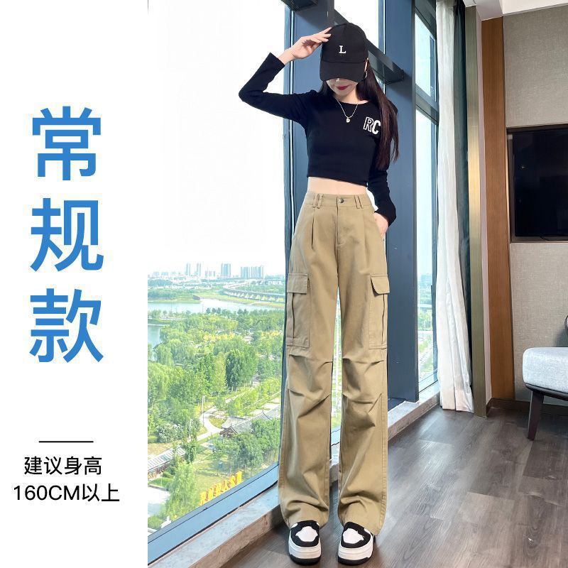 여성용 아메리칸 스타일 작업복 2025 봄 가을 신형 낙하산 등산 바지 하이 웨이스트 슬림 네로우 버전 스트레이트 와이드 레그 팬츠스토어 가기
