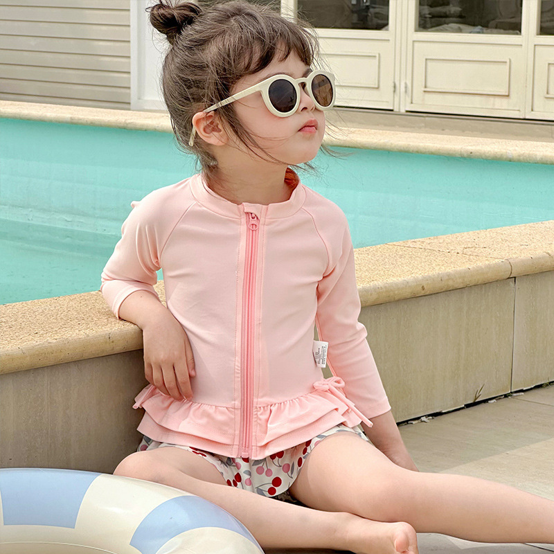 소녀 수영복 긴 소매 태양 보호 분할 빠른 드라이 수영복 세트 귀여운 아기 스위트 비치 온천 휴일 수영복스토어 가기
