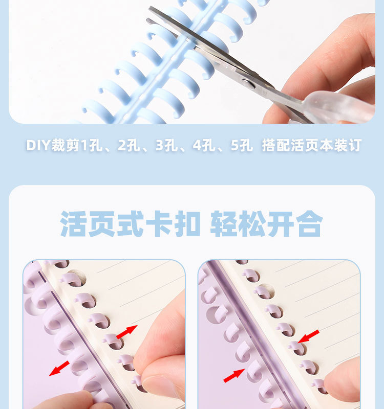 루스리프 버클 A4 바인더 파일링 30홀 플라스틱 코일 버클 B5 노트북 커버 탈부착 가능