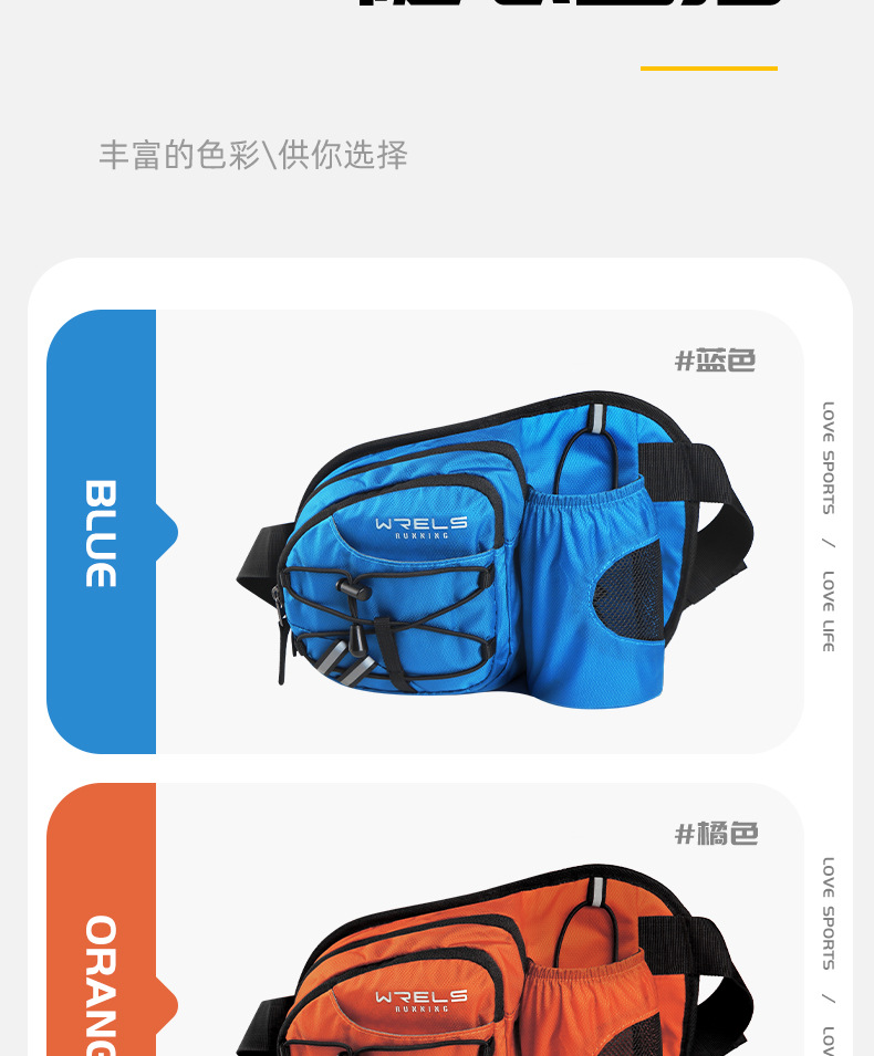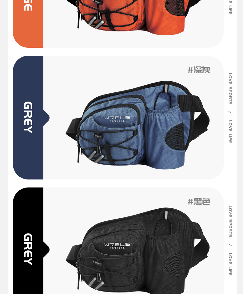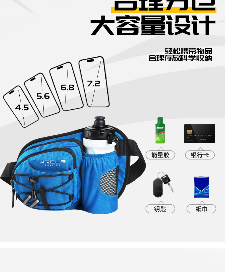 WRELS 스포츠 물병 허리 가방 러닝 사이클링 휴대 전화 가방 야외 등산 대용량 벨트 마라톤 장비스토어 가기
