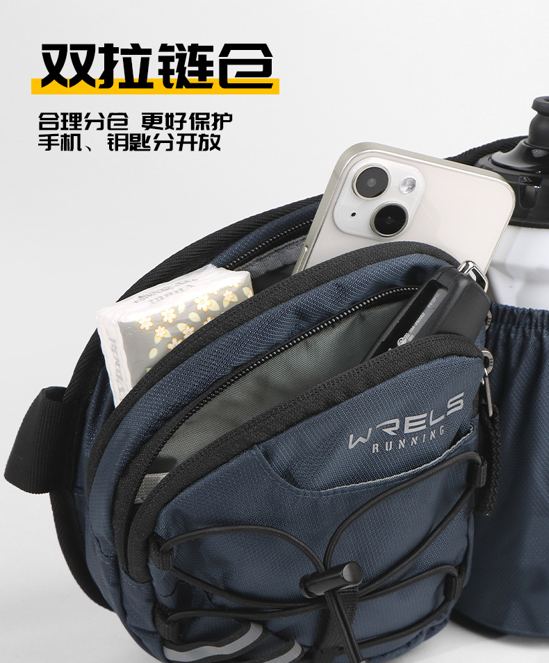 WRELS 스포츠 물병 허리 가방 러닝 사이클링 휴대 전화 가방 야외 등산 대용량 벨트 마라톤 장비