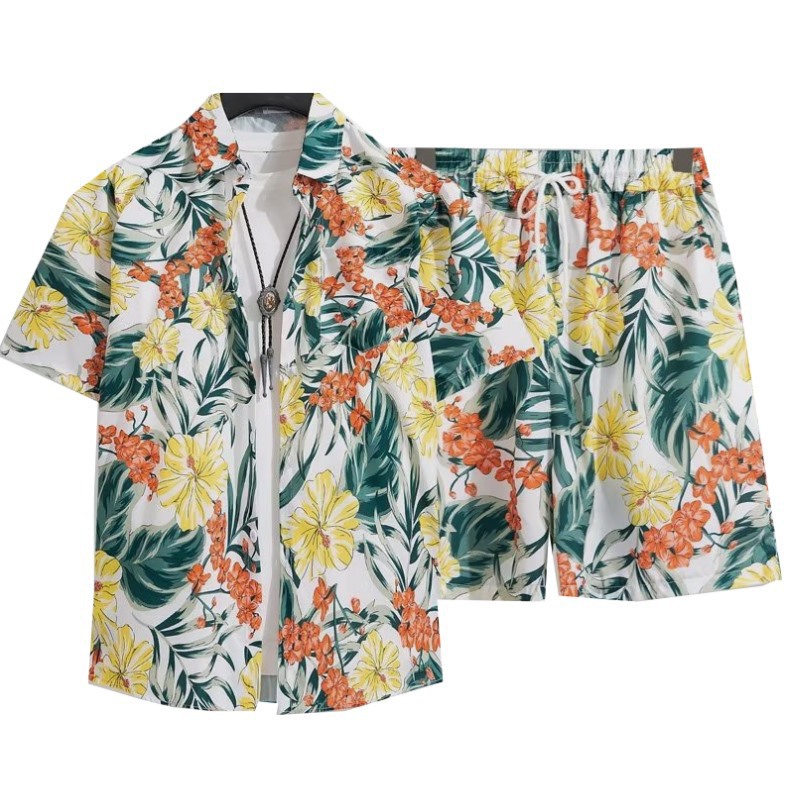 하와이 세트 해변 휴가 태국 꽃무늬 셔츠 반팔 소년 소녀 부모-자식 꽃무늬 5부 소매 여름 아동복스토어 가기