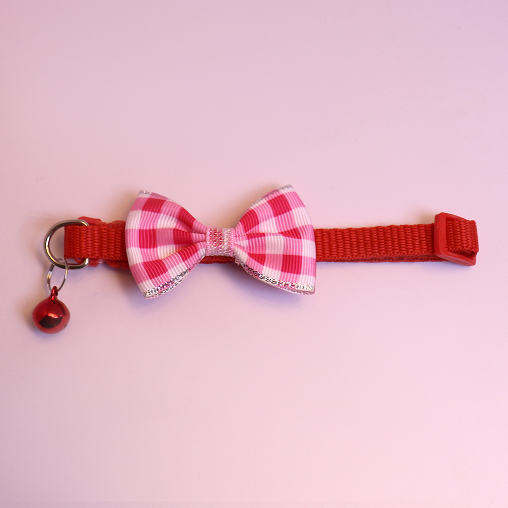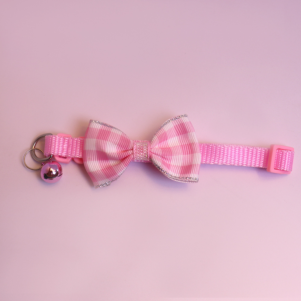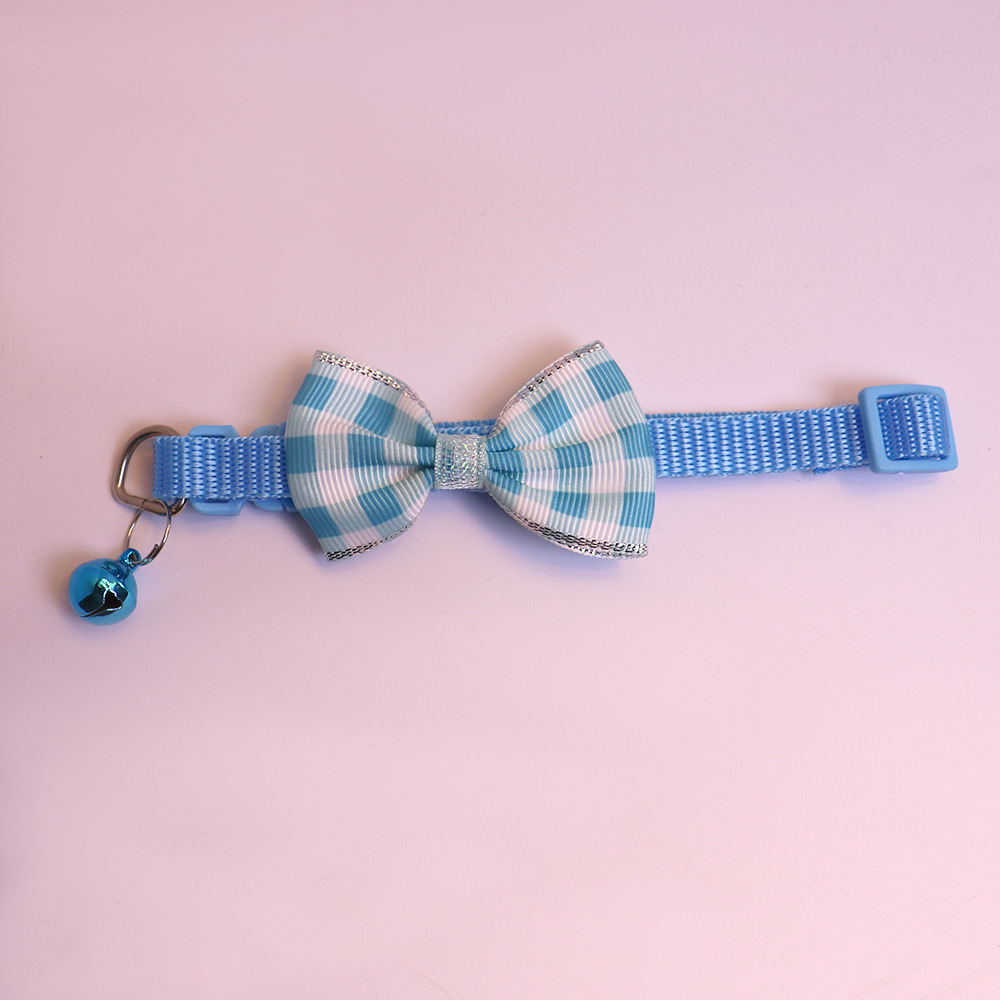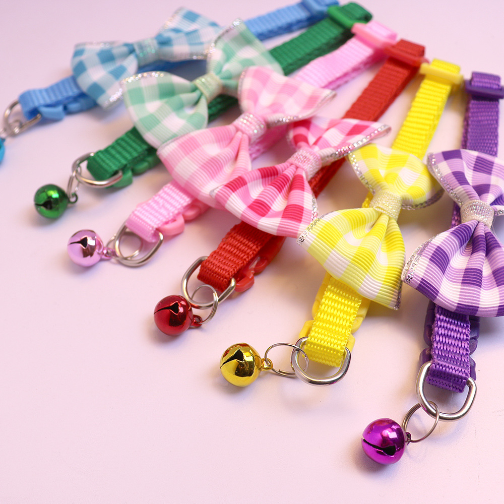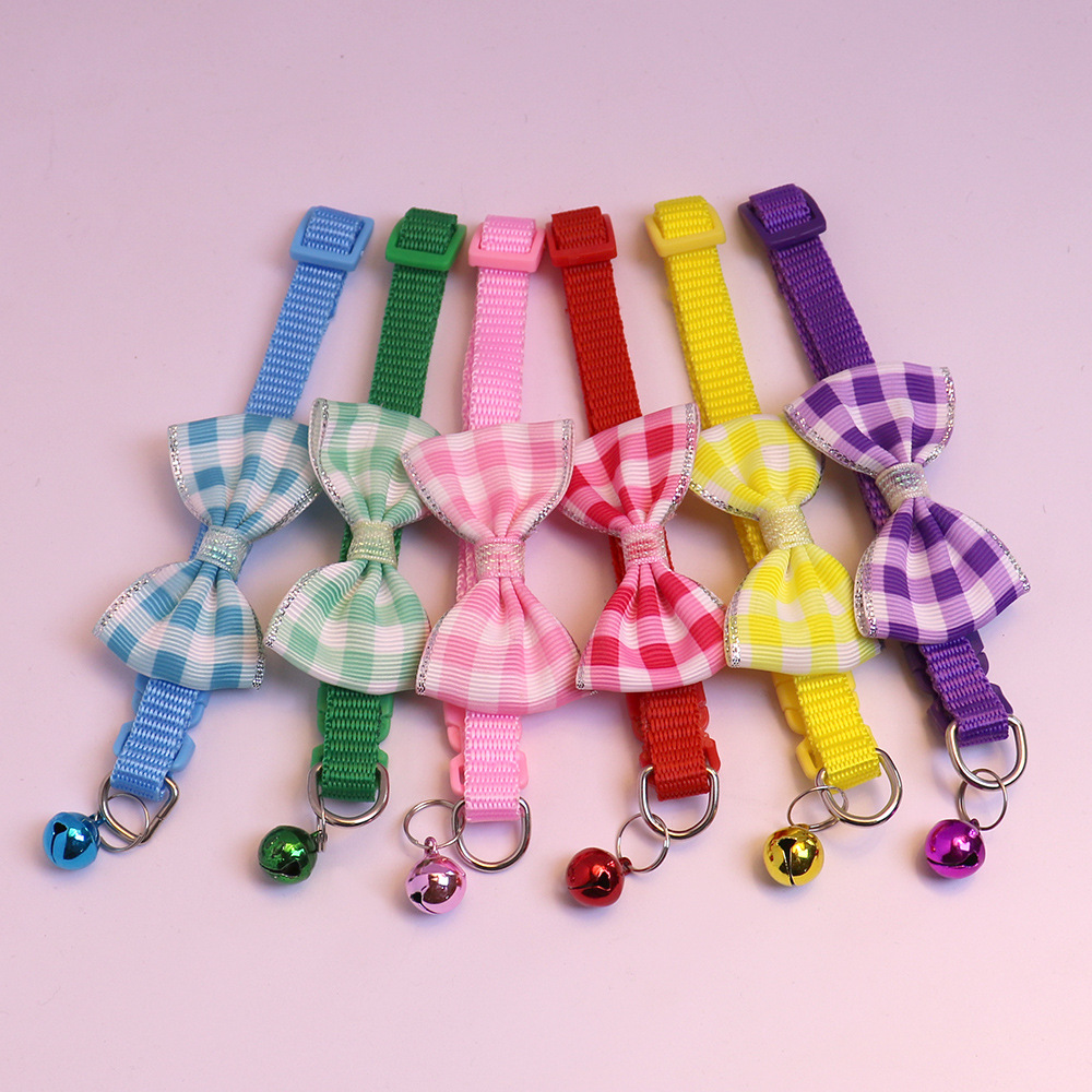 새로운 애완 동물 격자 무늬 활 목걸이 귀여운 고양이 벨 목걸이 개 목걸이 애완 동물 용품 국경 간 독점 공급스토어 가기