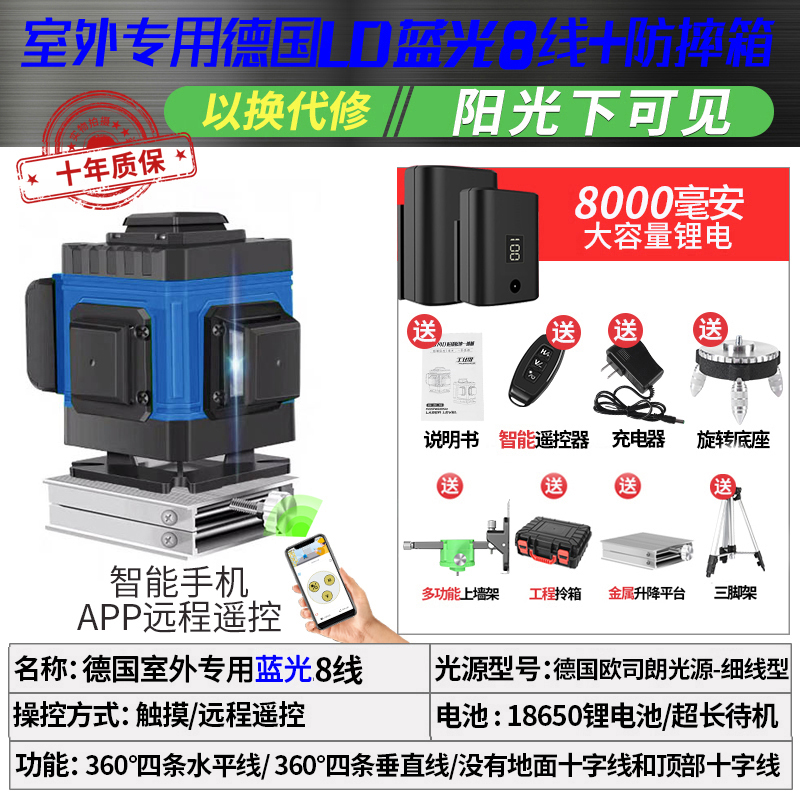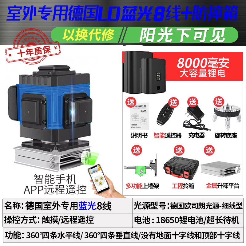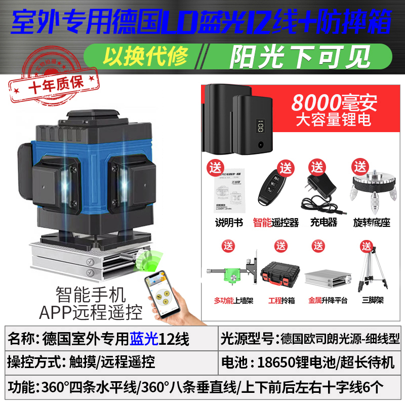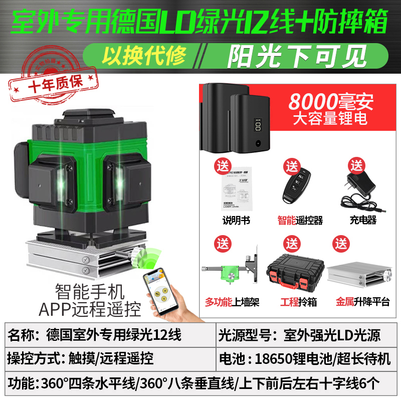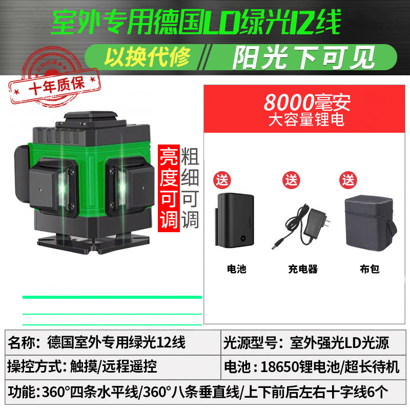 Hairo 12 라인 녹색광 고정밀 레벨 미터 청색광 야외 강한 빛 자동 라인 16 라인 적외선 수위 측정기스토어 가기
