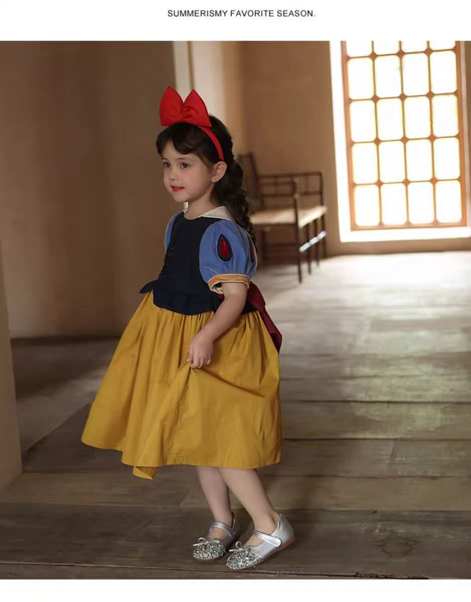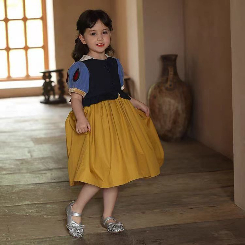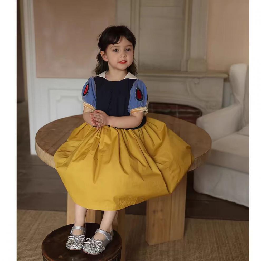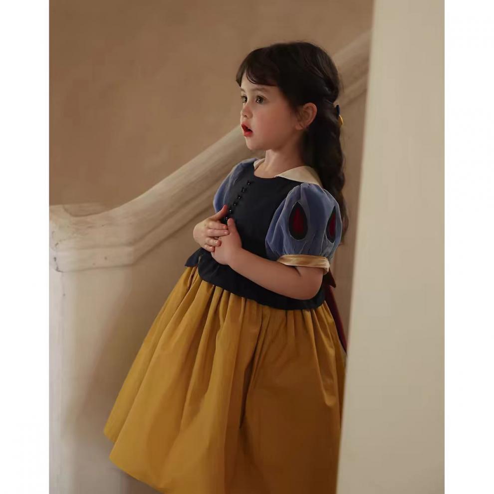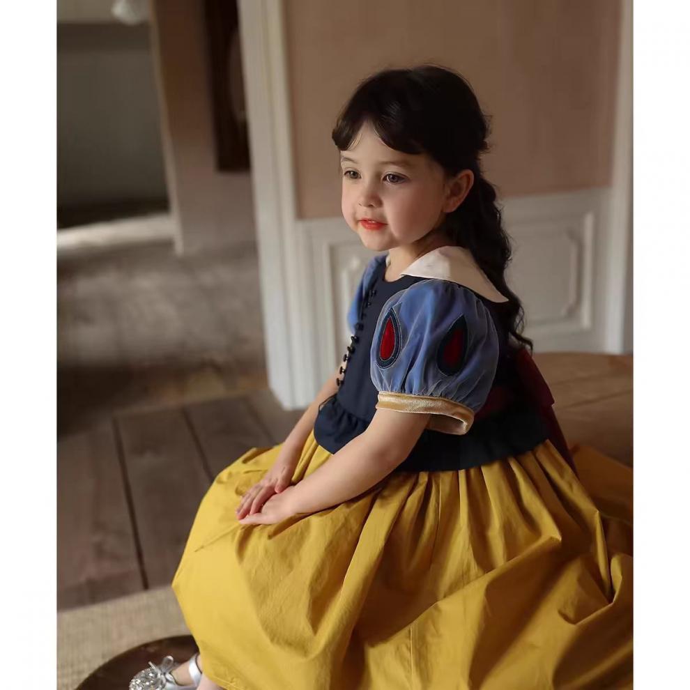 2025 여름 로리타 백설 공주 원피스 원피스 미드 빅 키즈 세련된 유행 소녀 슬리브 고급 롱 원피스 비행스토어 가기