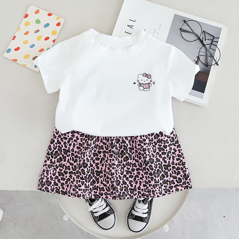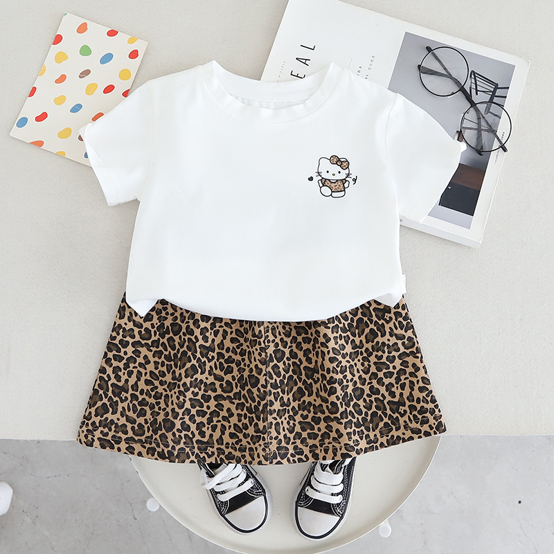 여자 여름 반팔 세트 새로운 세련된 어린이 여름 옷 아기의 유행 레오파드 무늬 스커트 투피스 유행스토어 가기