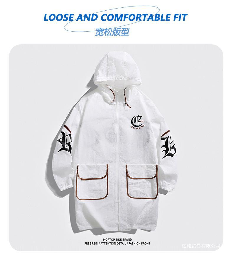 남성용 오리지널 직접 판매 중간 길이 자외선 차단 의류, 후드가 있는 가벼운 윈드 브레이커, 여름 자외선 차단 낚시 의류, 긴 셔츠스토어 가기