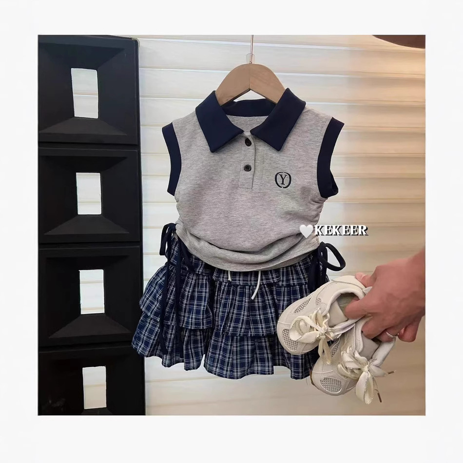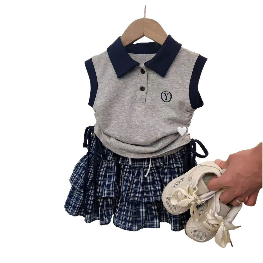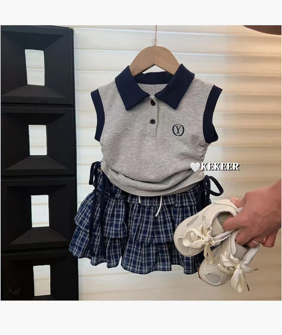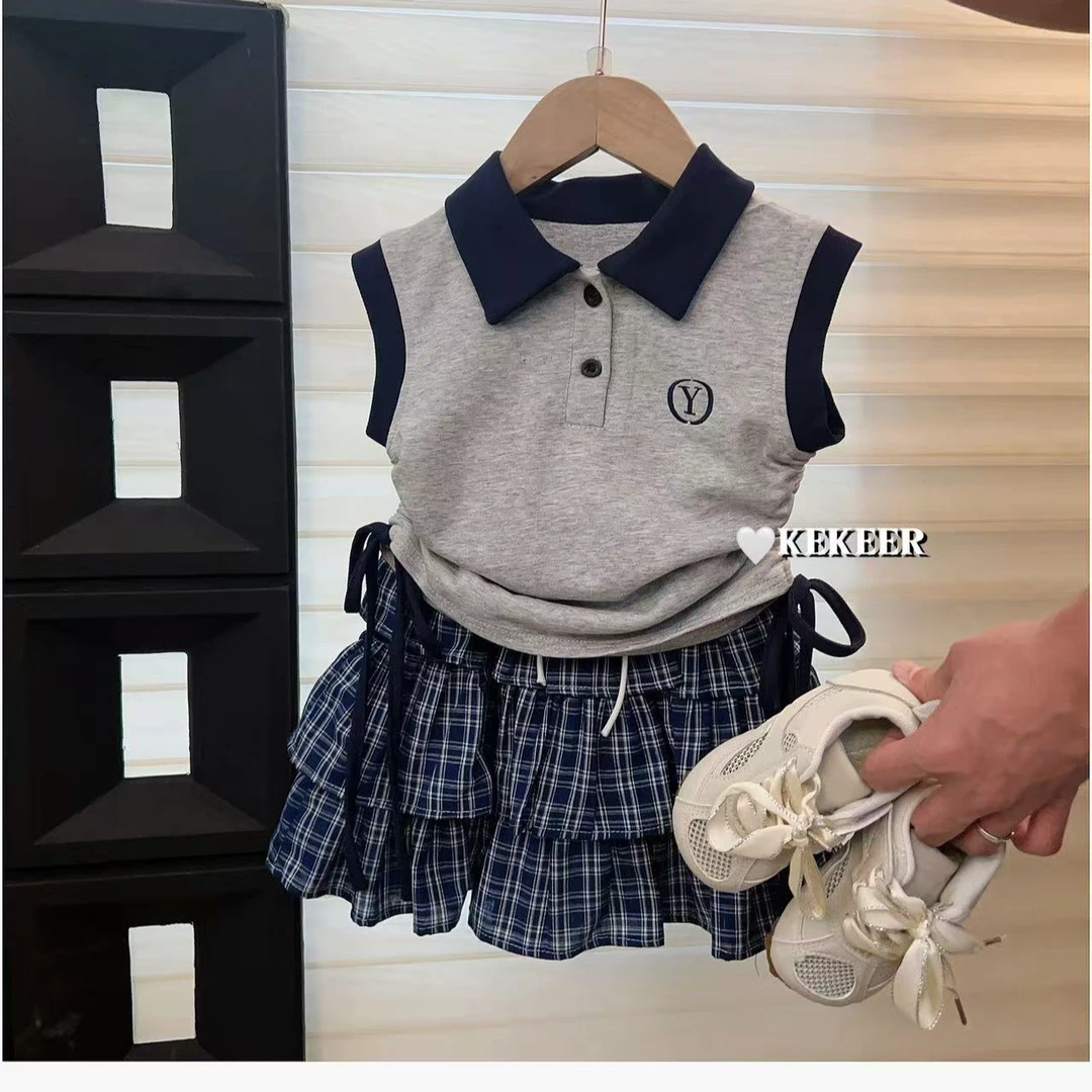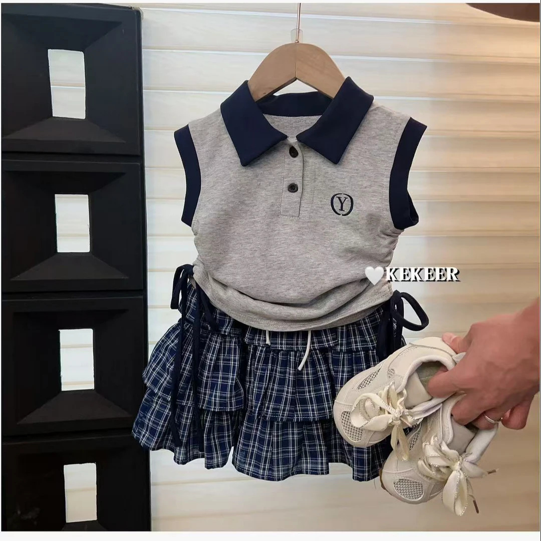 소녀의 여름 스커트 바지 세트 한국 스타일 새로운 도착 서양식 아기 소녀의 여름 원피스 격자 무늬 컬로 테스 올매치 어린이 트렌디 500322