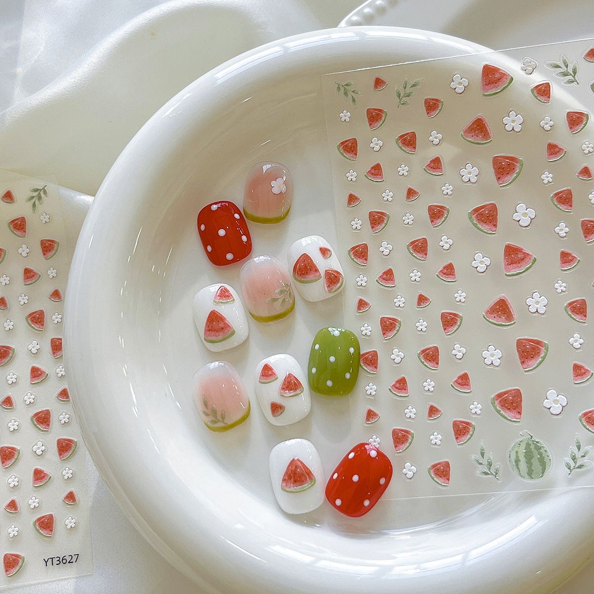 2025 새로운 귀여운 만화 꽃 수박 양각 네일 아트 스티커 여름 멋진 수박 접착제 네일 장식