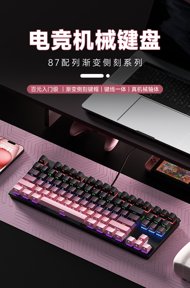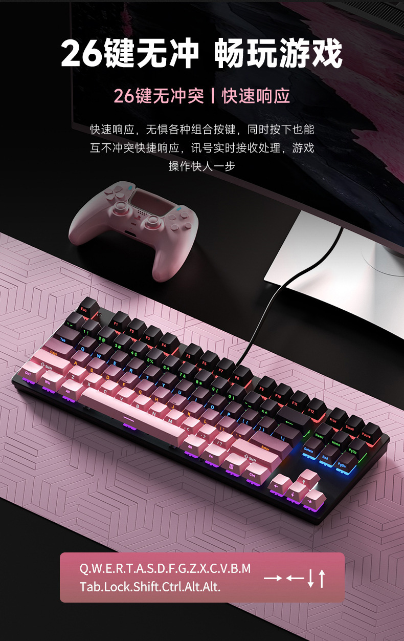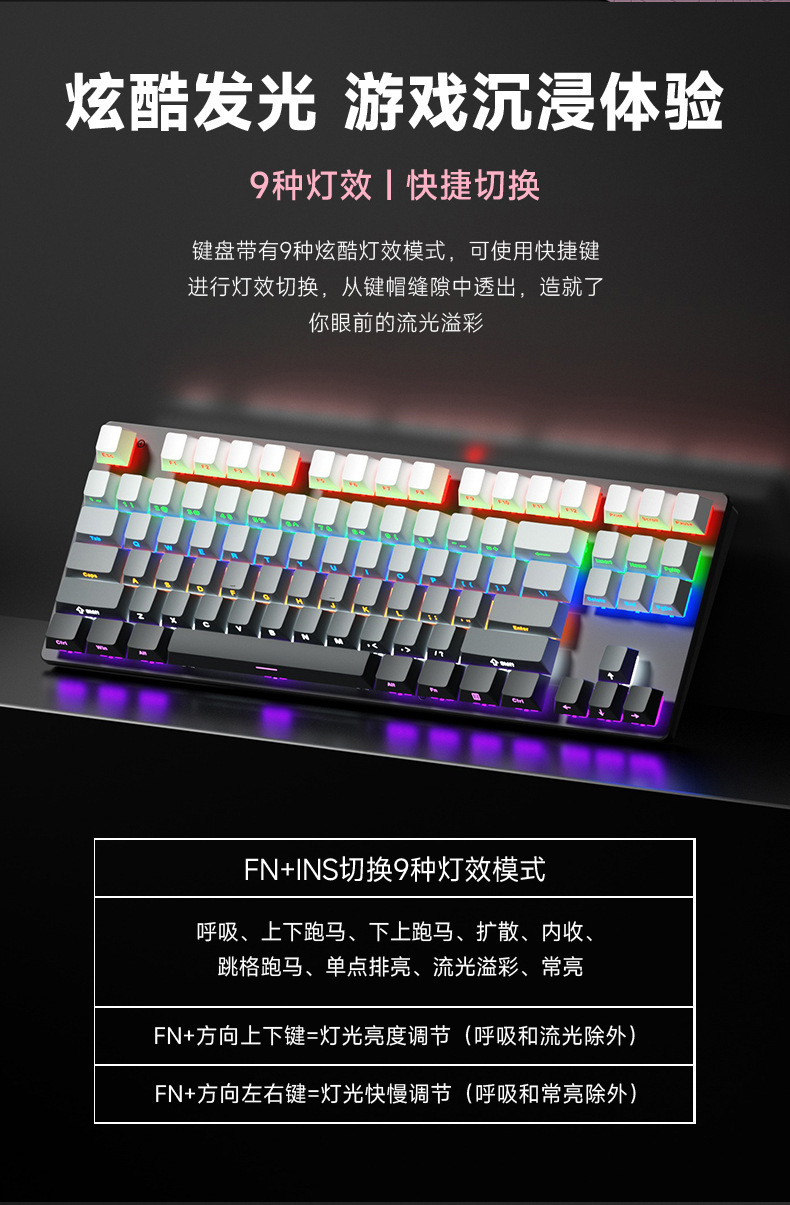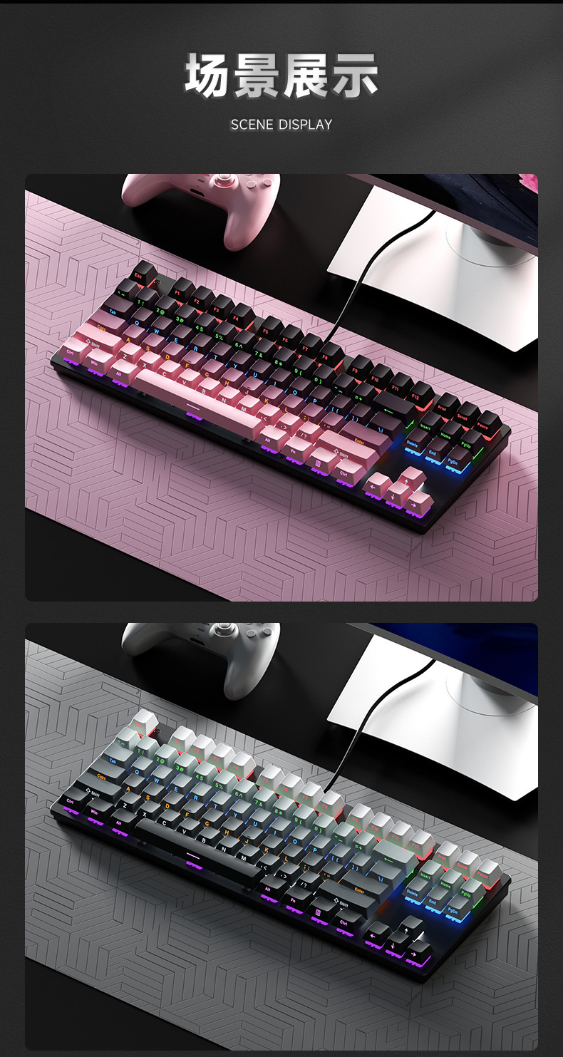 유선 기계식 키보드 청축, 블랙축, 레드축, 다양한 조명 효과, 87/104키, e스포츠, 사무용, 게임용 키보드스토어 가기