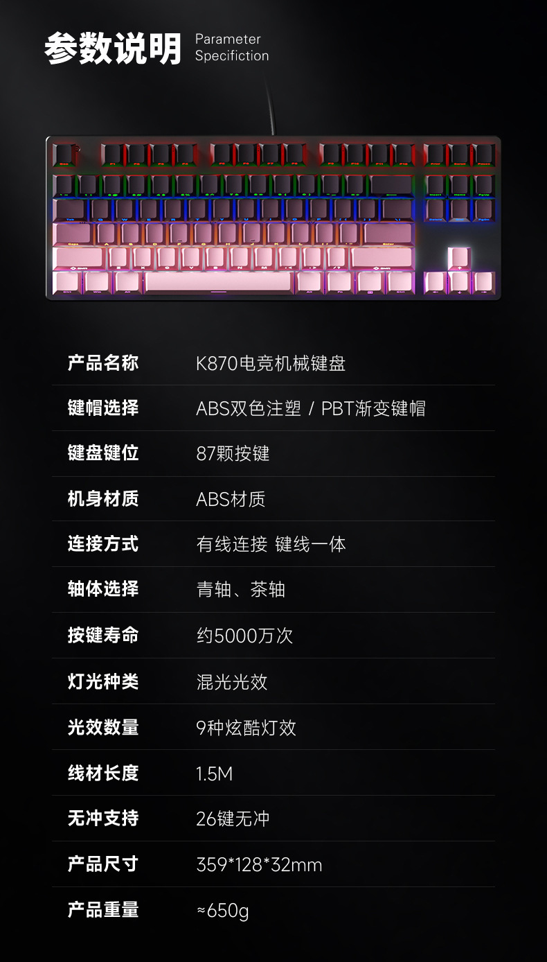 유선 기계식 키보드 청축, 블랙축, 레드축, 다양한 조명 효과, 87/104키, e스포츠, 사무용, 게임용 키보드