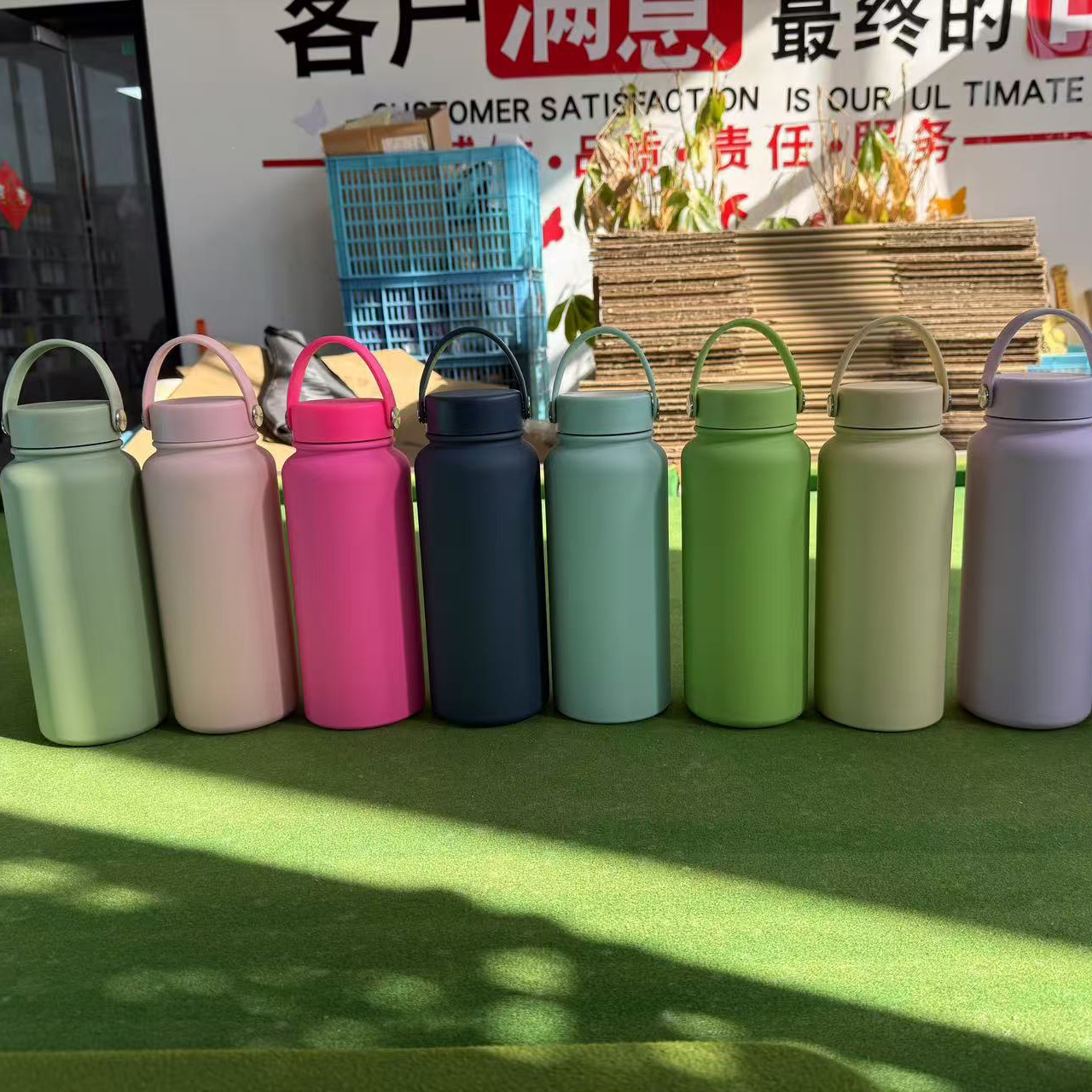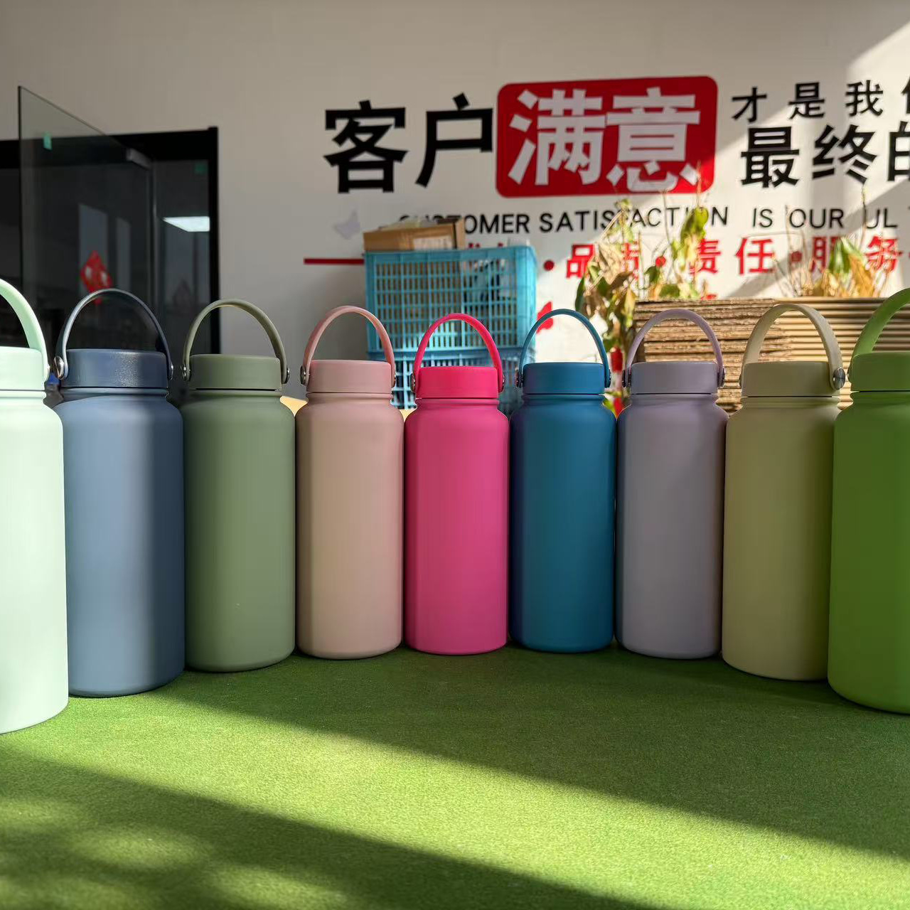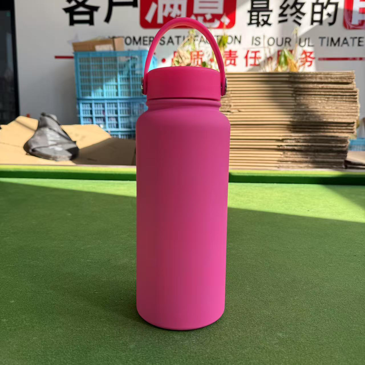 국경 간 대용량 32oz 고무 페인트 스테인레스 스틸 스페이스 포트 마크롱 컬러 여행 등산 핸들 커버 보온병 컵