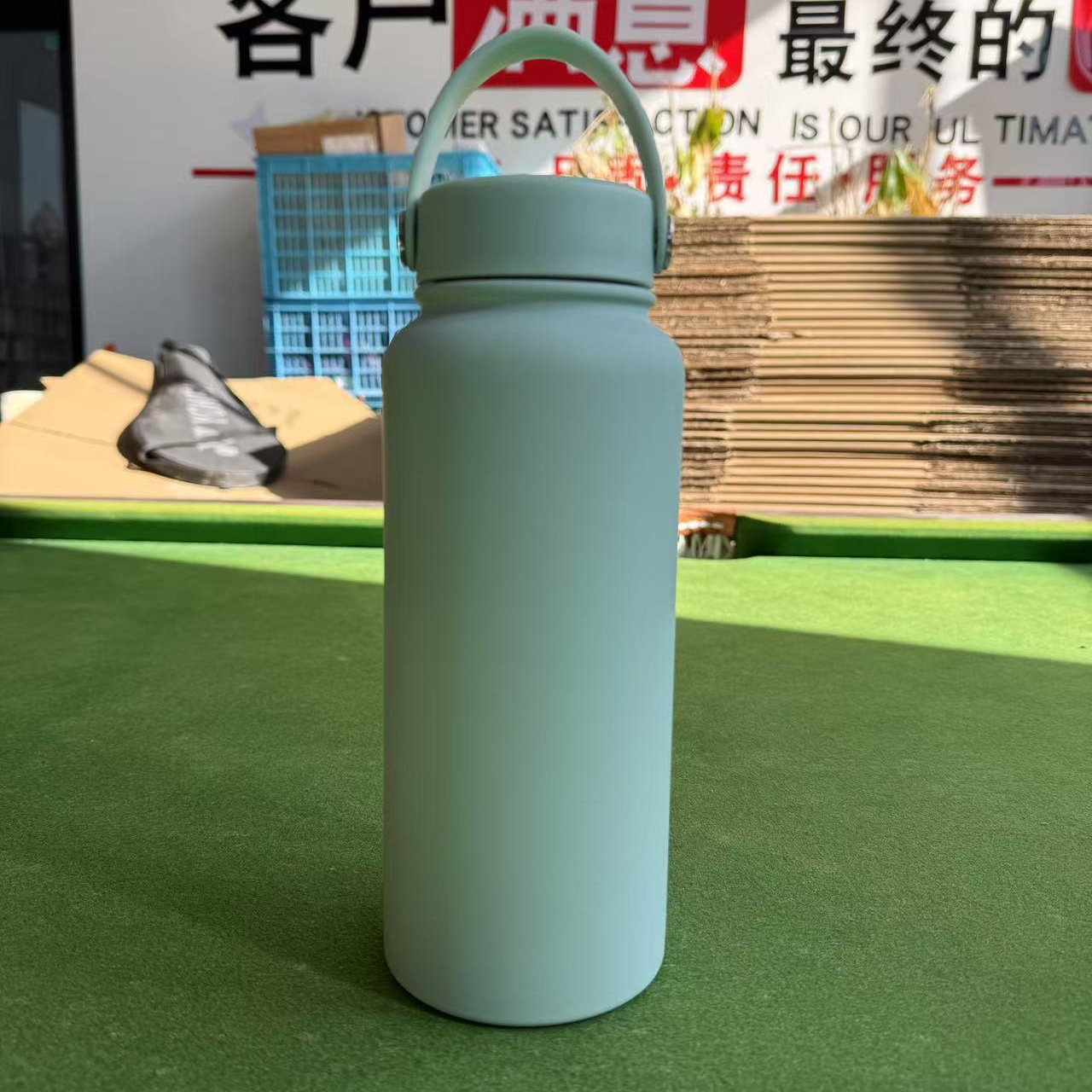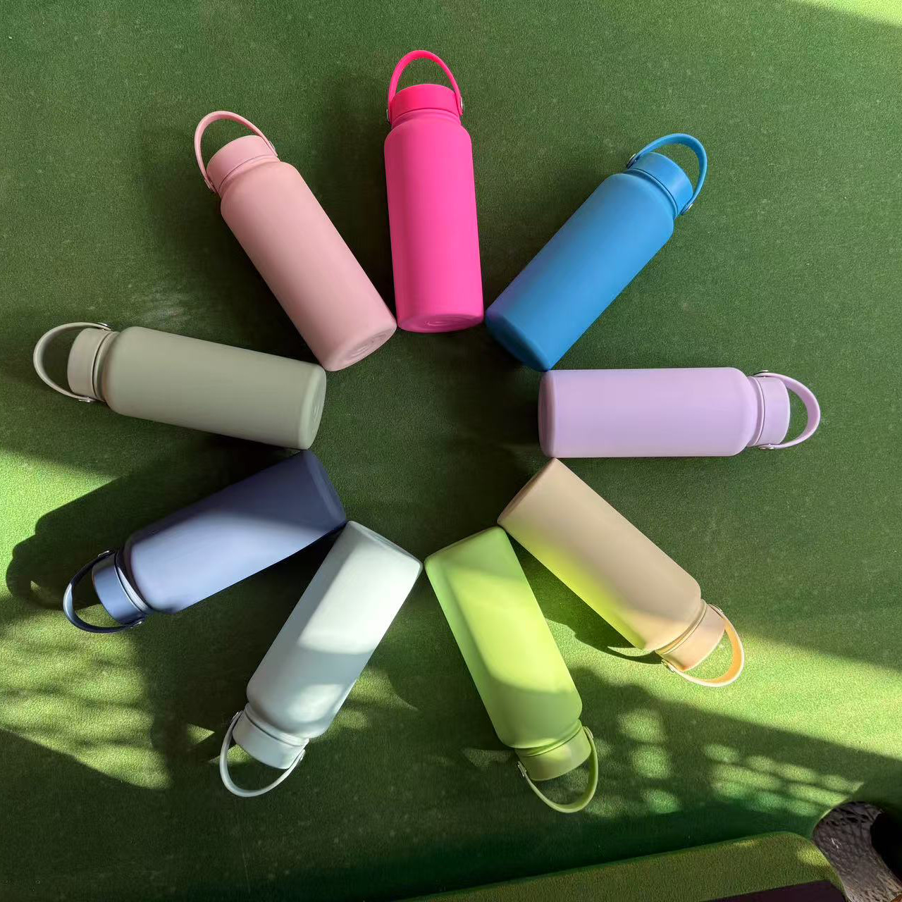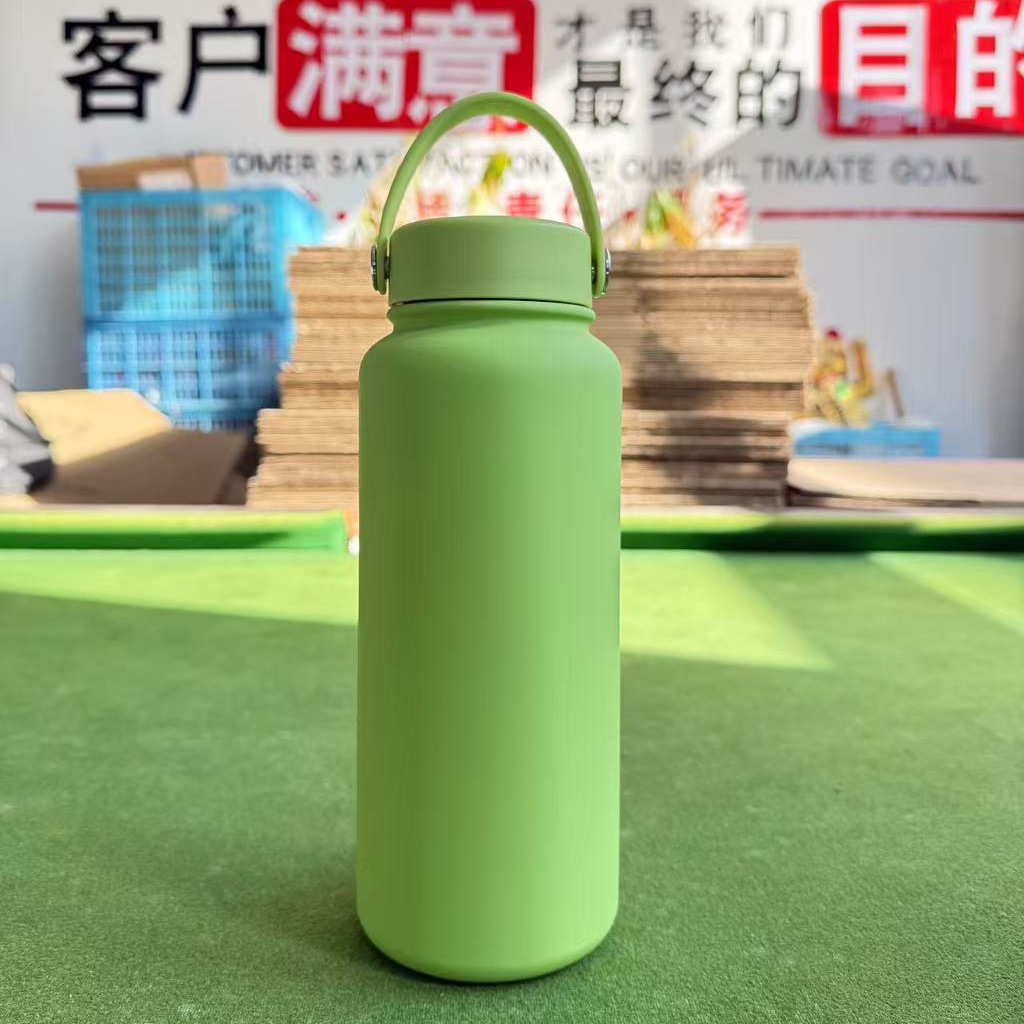 국경 간 대용량 32oz 고무 페인트 스테인레스 스틸 스페이스 포트 마크롱 컬러 여행 등산 핸들 커버 보온병 컵