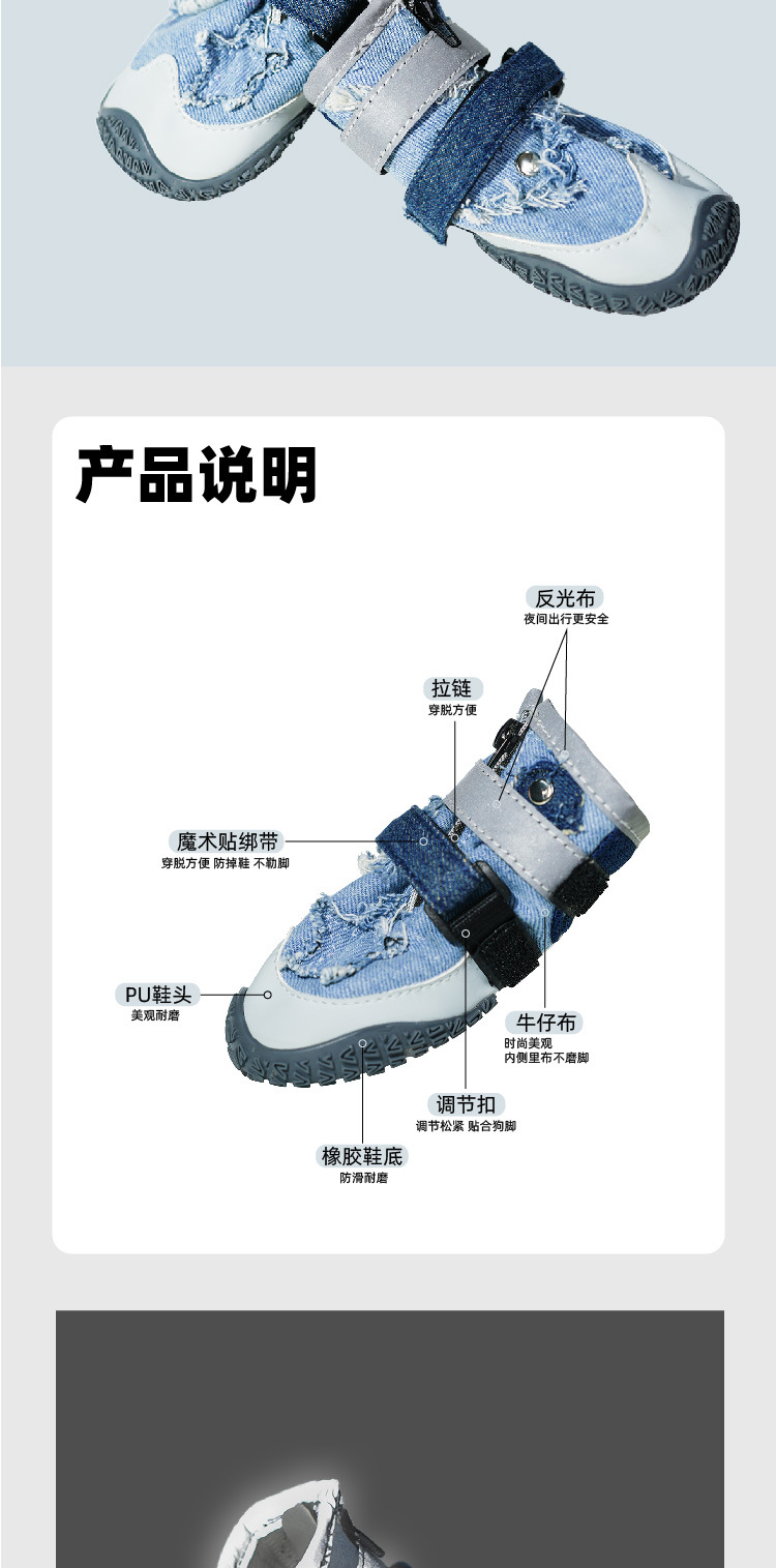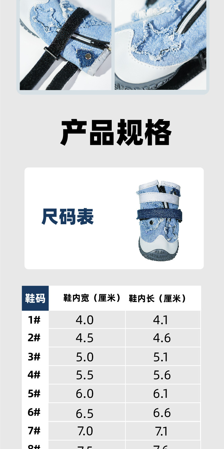 애완동물 패션 신발, 미끄럼 방지 및 내마모성 데님 신발, 더러운 방지 개 신발, 중대형 개 하이킹 신발, 애완동물 신발스토어 가기