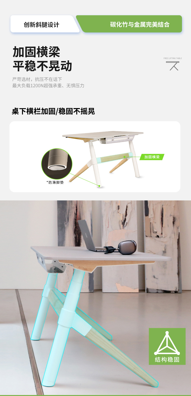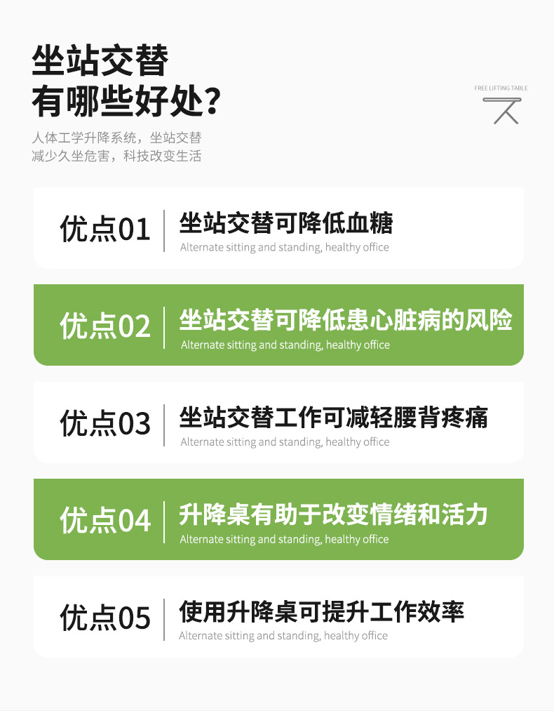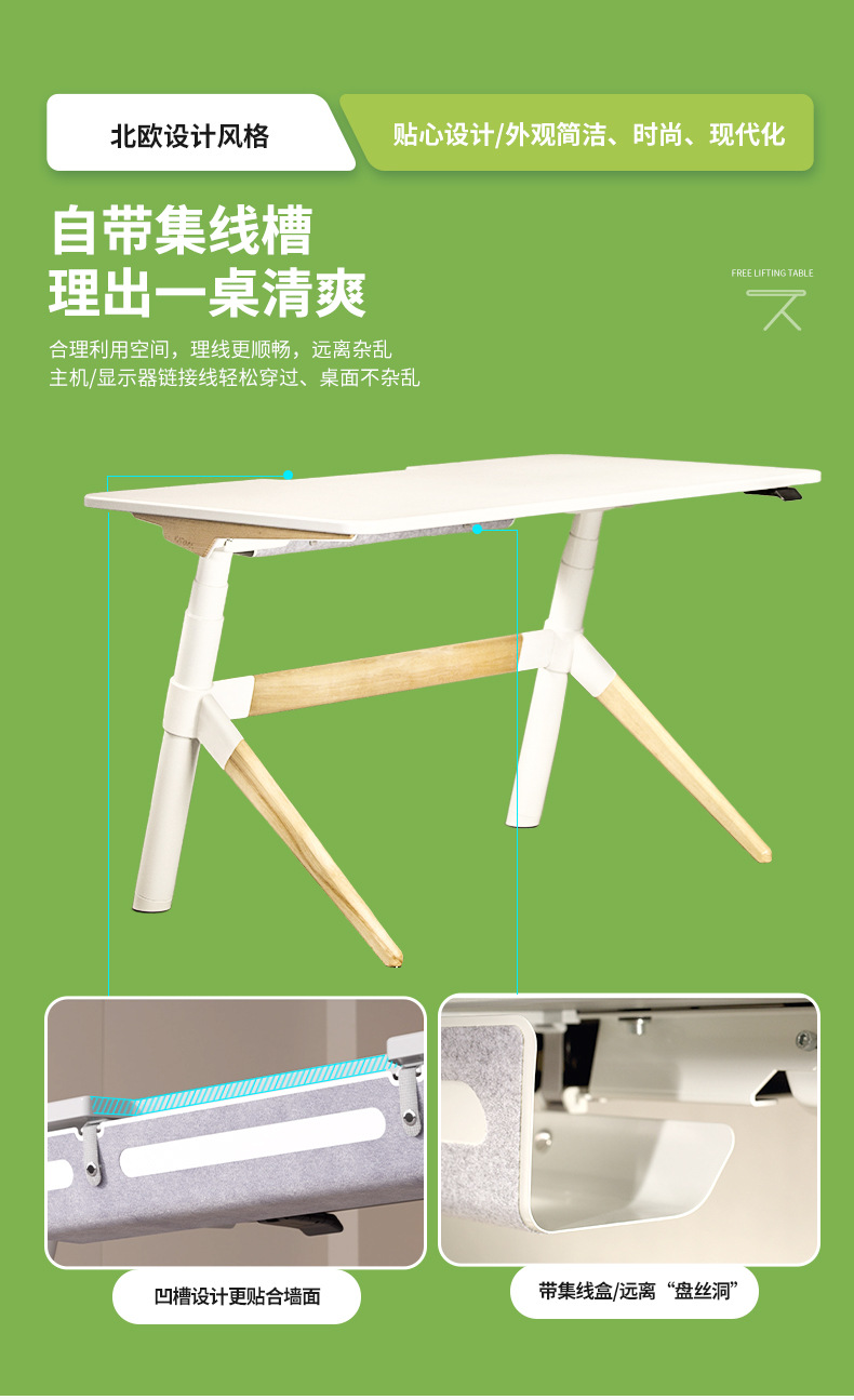 전기 리프팅 데스크 컴퓨터 데스크 사무실 작성 작업대 3 다리 라운드 튜브 비스듬한 다리 미끄럼 방지 발 패드 지원