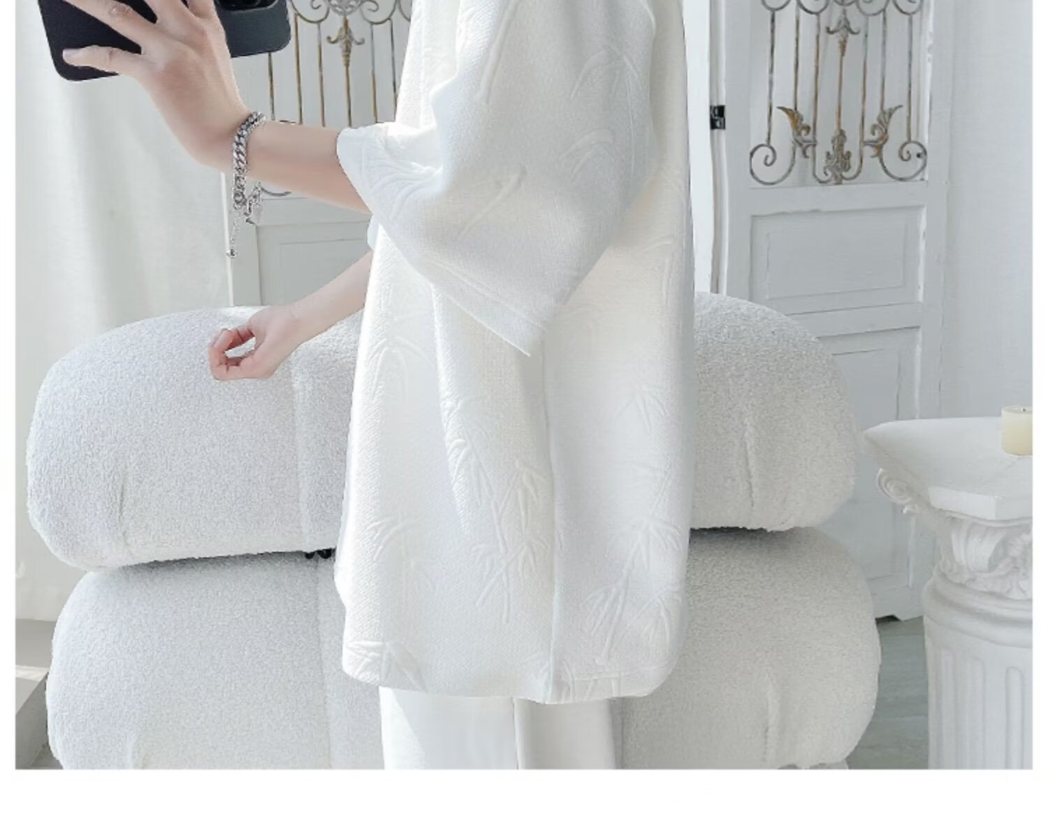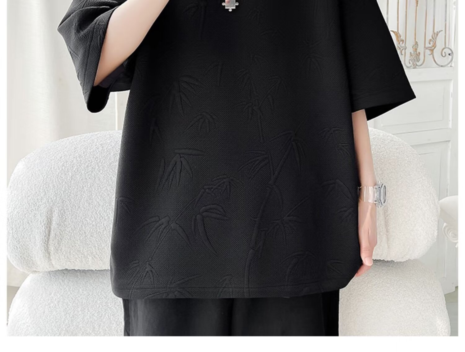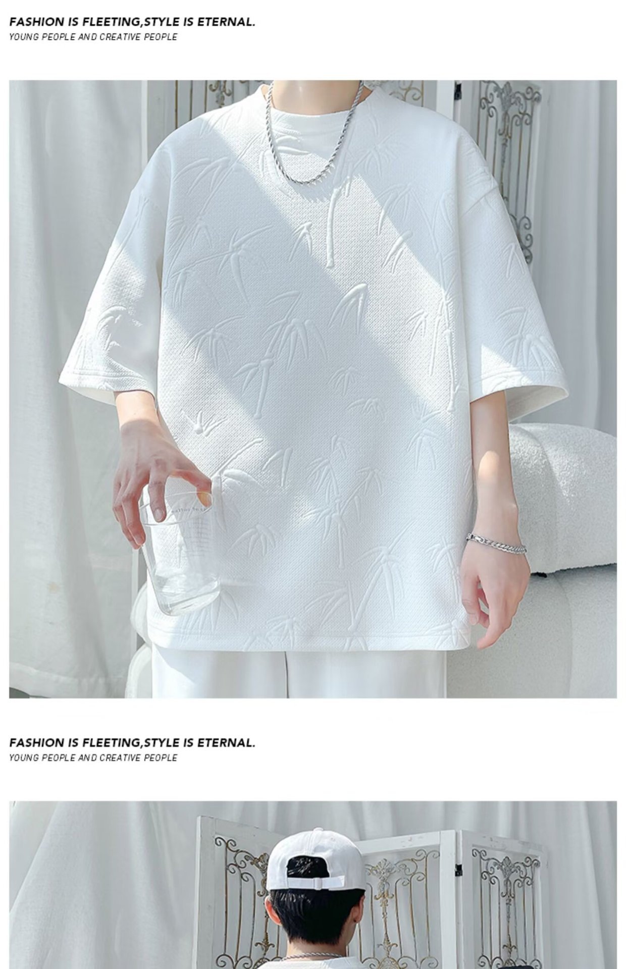 새로운 중국 스타일 국가 스타일 반팔 티셔츠 남성 여름 질감 센스 대나무 패션 브랜드 베이스 플러스 사이즈 느슨한 반소매