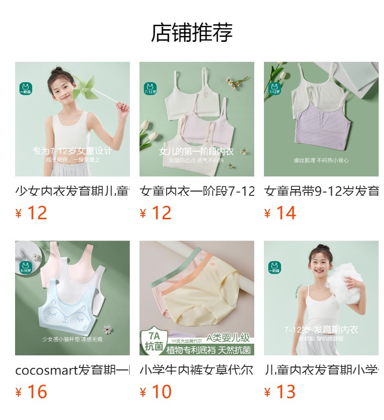 클래스 A 아동 속옷, 돌출 방지, 얇고 통기성이 뛰어난 초등학생 1단계 여아용 브라스토어 가기
