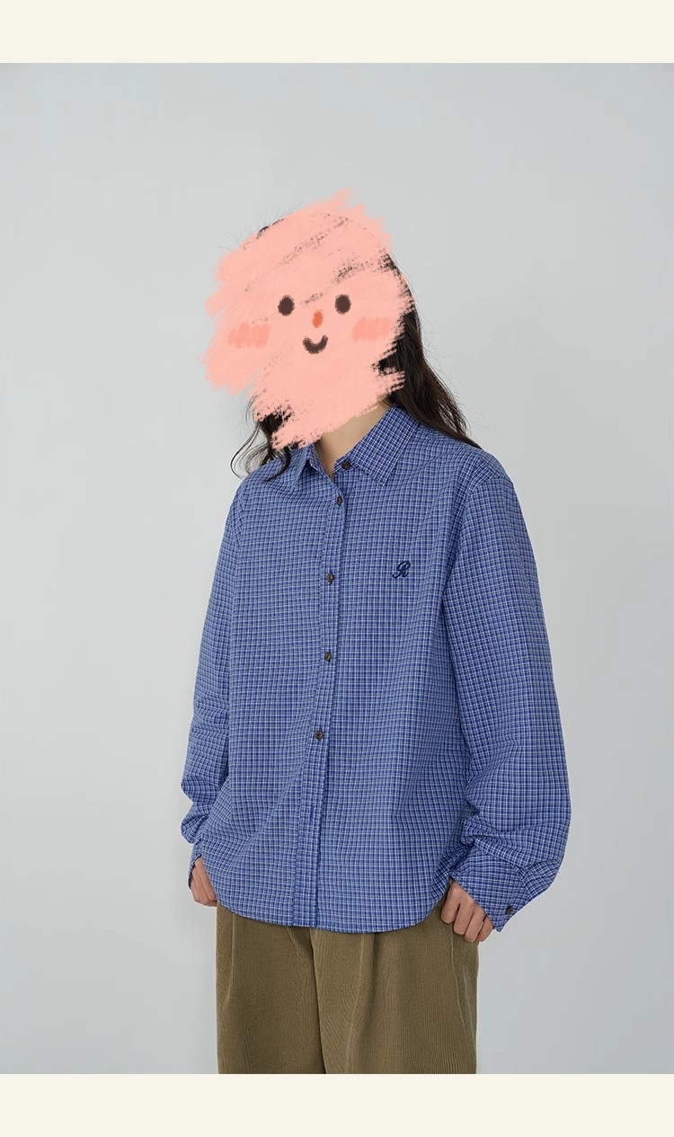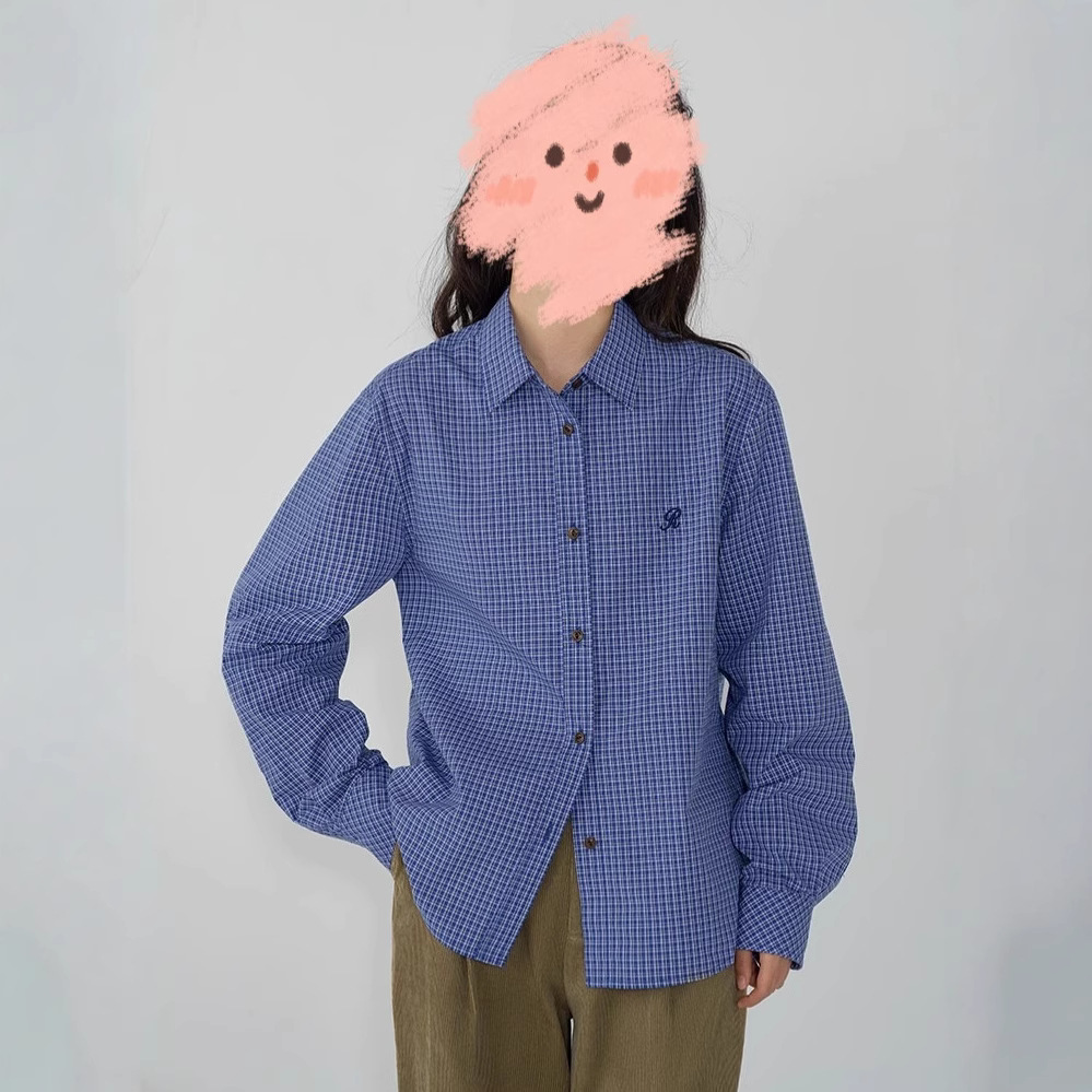 Sea Salt Diary 한국 스타일 다목적 MIU 블루 체크 무늬 셔츠 여성 봄, 가을 새로운 복고풍 통근 셔츠 탑스토어 가기