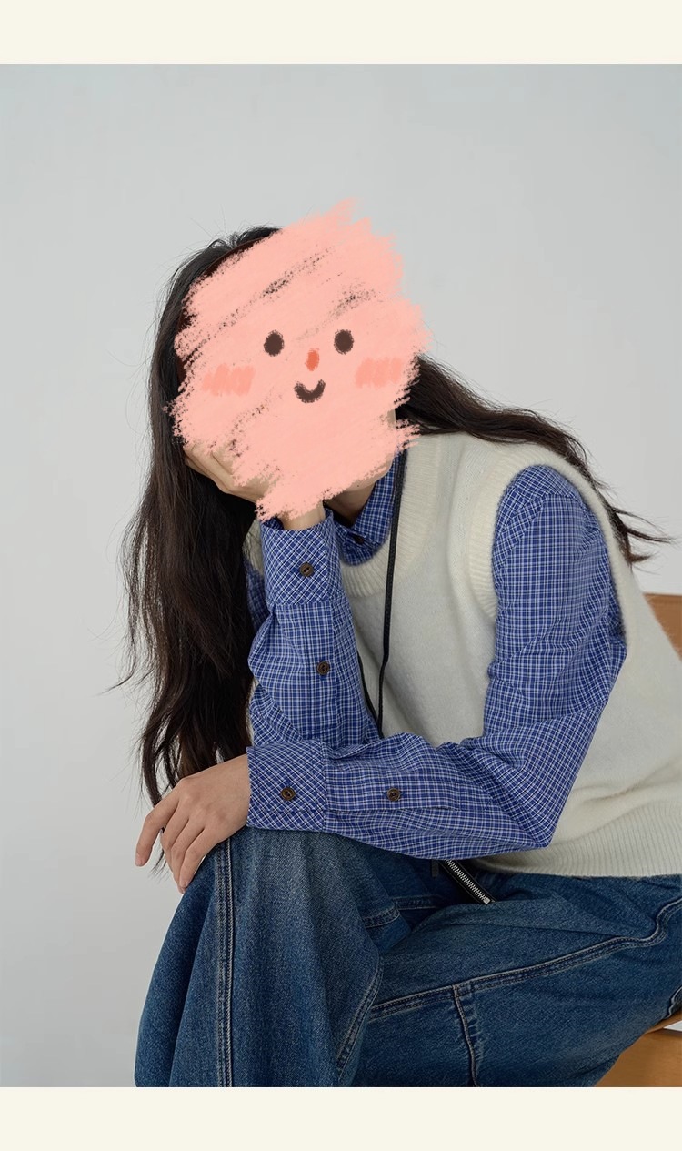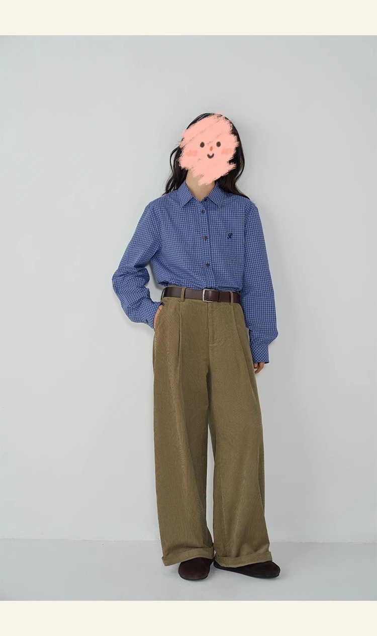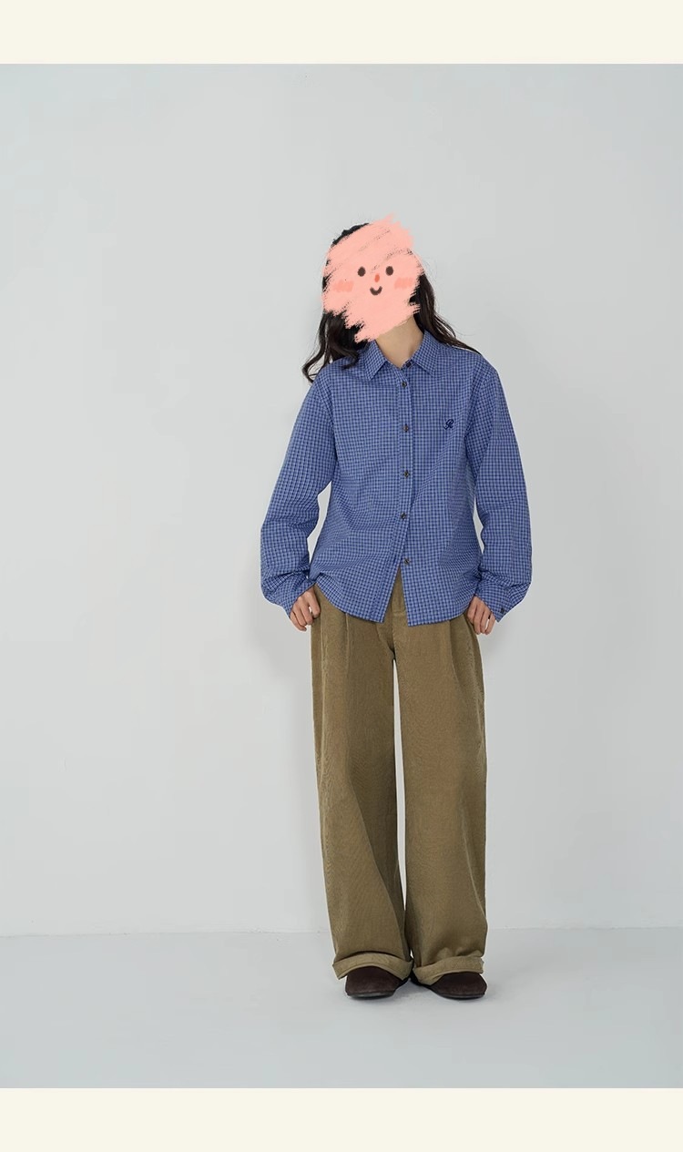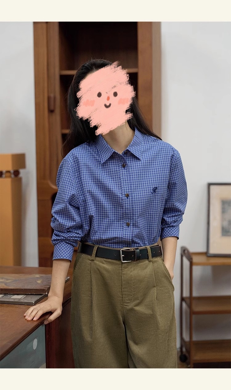 Sea Salt Diary 한국 스타일 다목적 MIU 블루 체크 무늬 셔츠 여성 봄, 가을 새로운 복고풍 통근 셔츠 탑