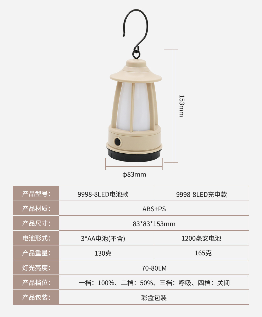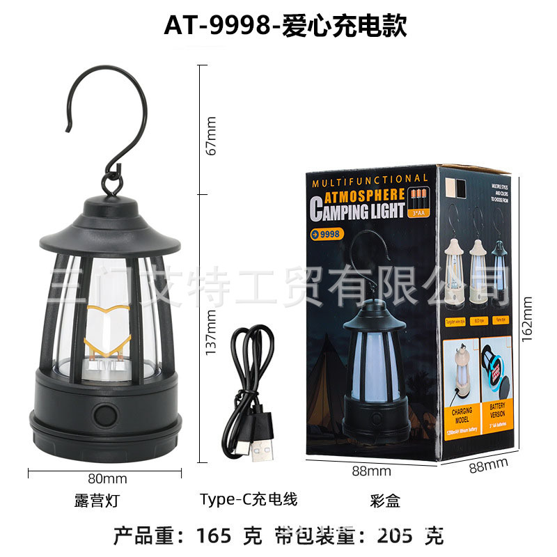새로운 야외 복고풍 캠핑 램프 휴대용 말 랜턴 충전식 텐트 램프 휴대용 후크 분위기 램프 캠프 램프스토어 가기