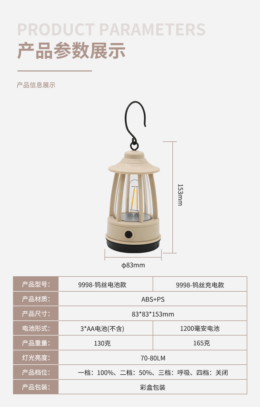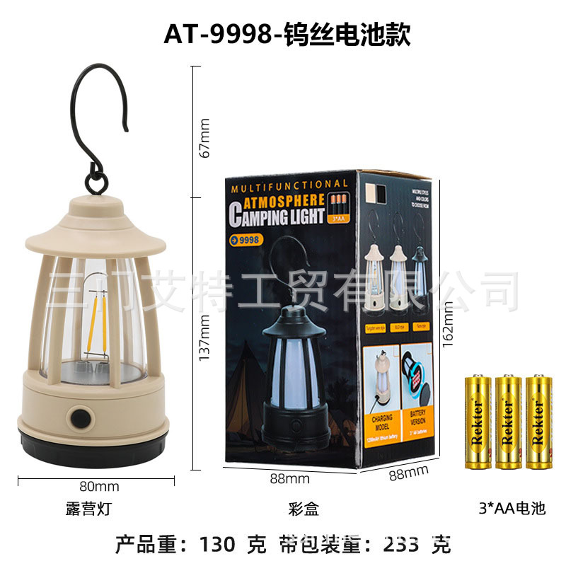 새로운 야외 복고풍 캠핑 램프 휴대용 말 랜턴 충전식 텐트 램프 휴대용 후크 분위기 램프 캠프 램프