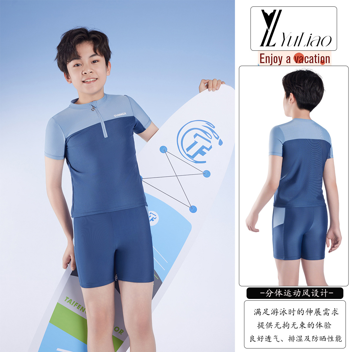 2025 어린이 수영복 수영복 청소년 자외선 차단 수영복 새로운 스타일 소년 스플릿 소년 중대형 어린이