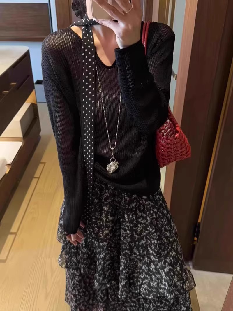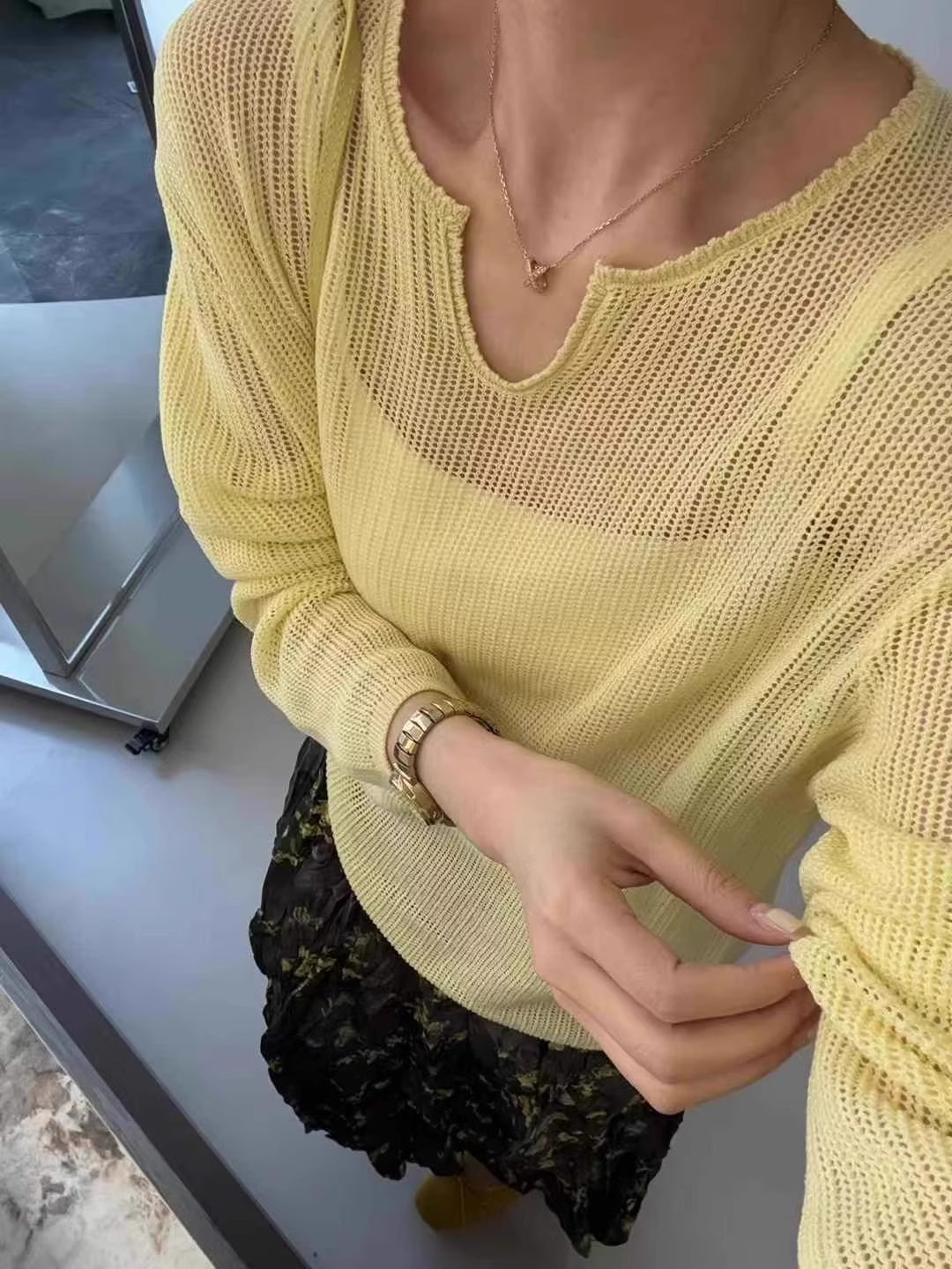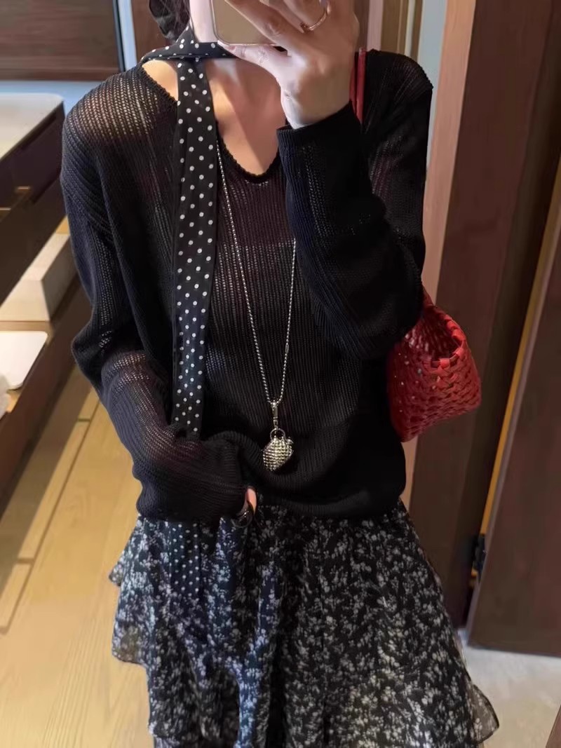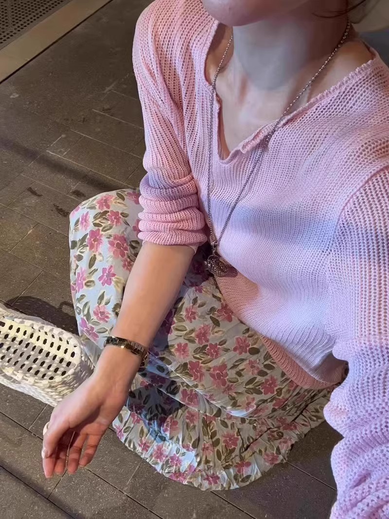 韩系V领薄款镂空针织衫女夏季配吊带的小外搭冰丝防晒空调衫