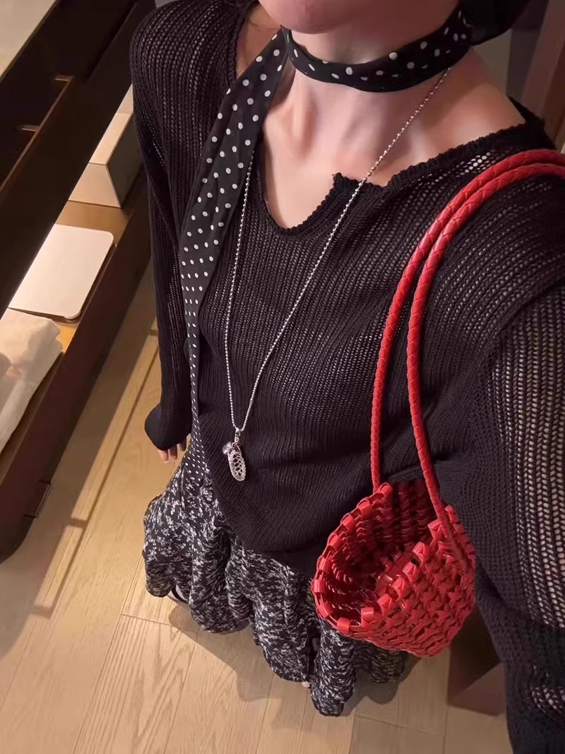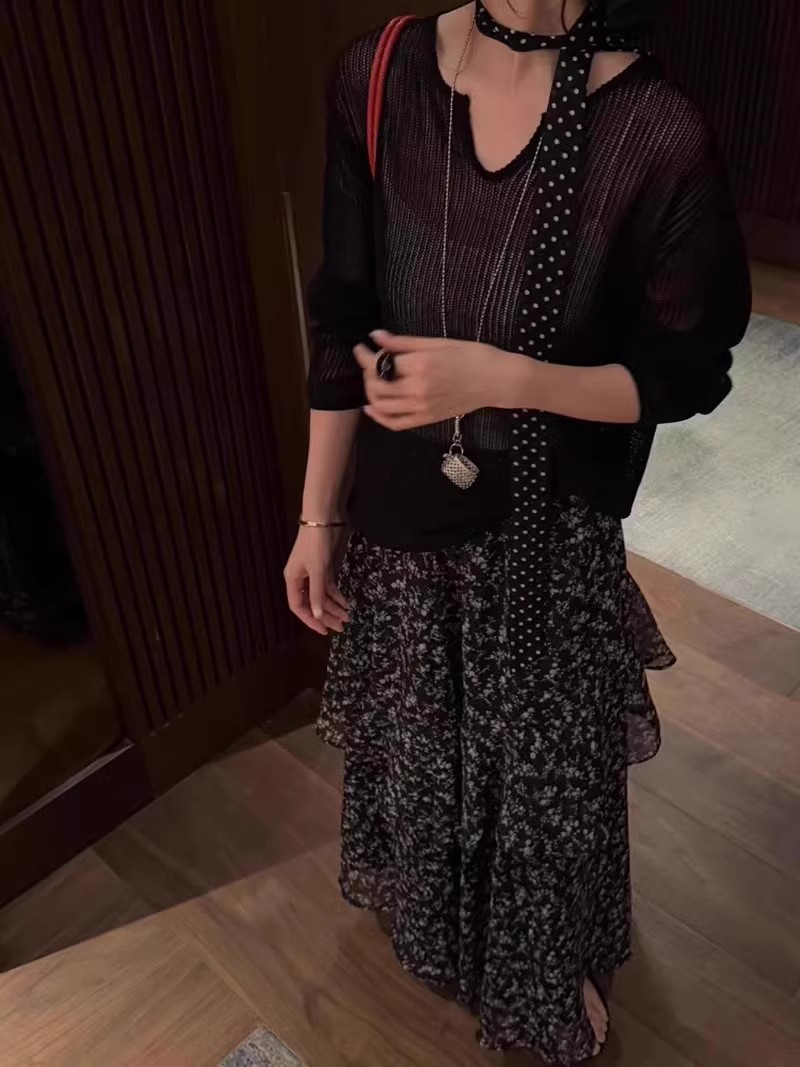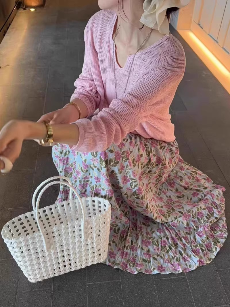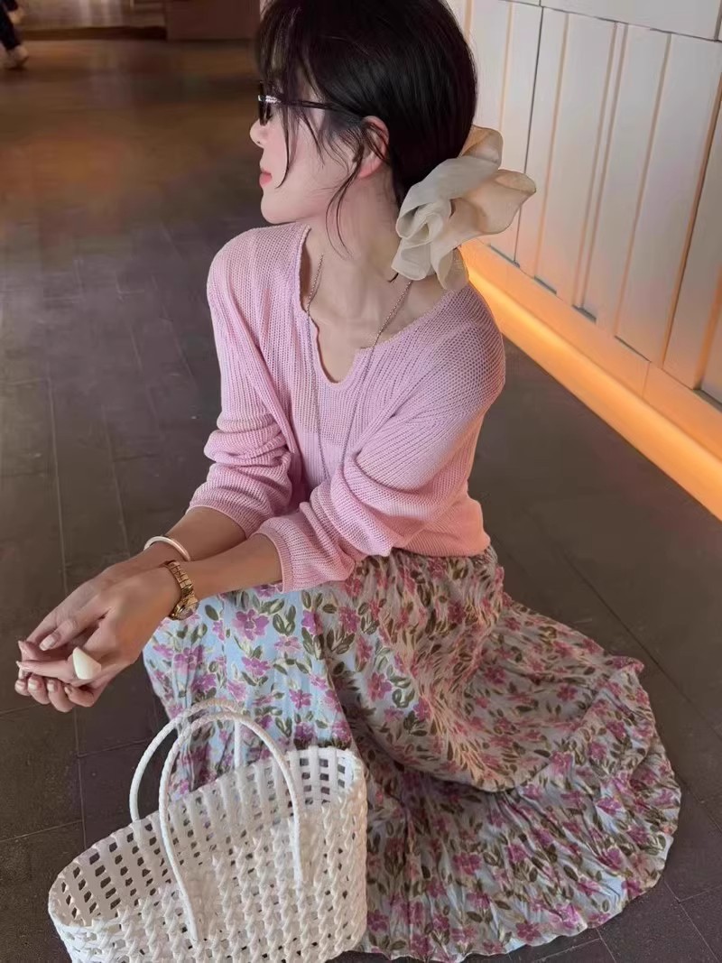 韩系V领薄款镂空针织衫女夏季配吊带的小外搭冰丝防晒空调衫