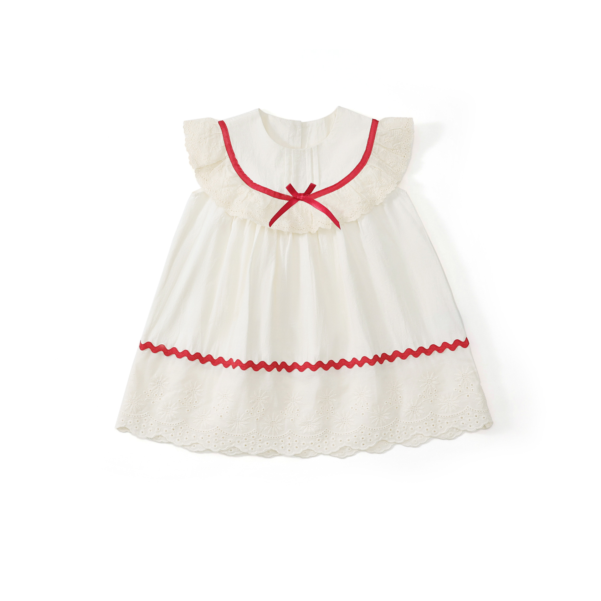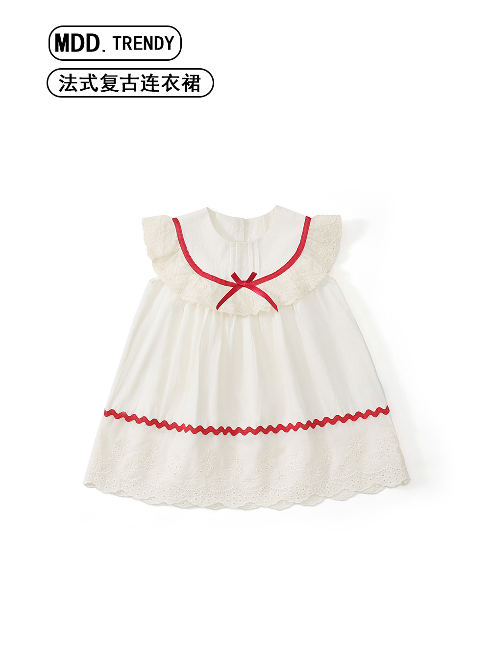 MDD 소녀 원피스 2025 여름 새로운 프랑스 활 빨간 리본 유행 어린이 국경 치마스토어 가기