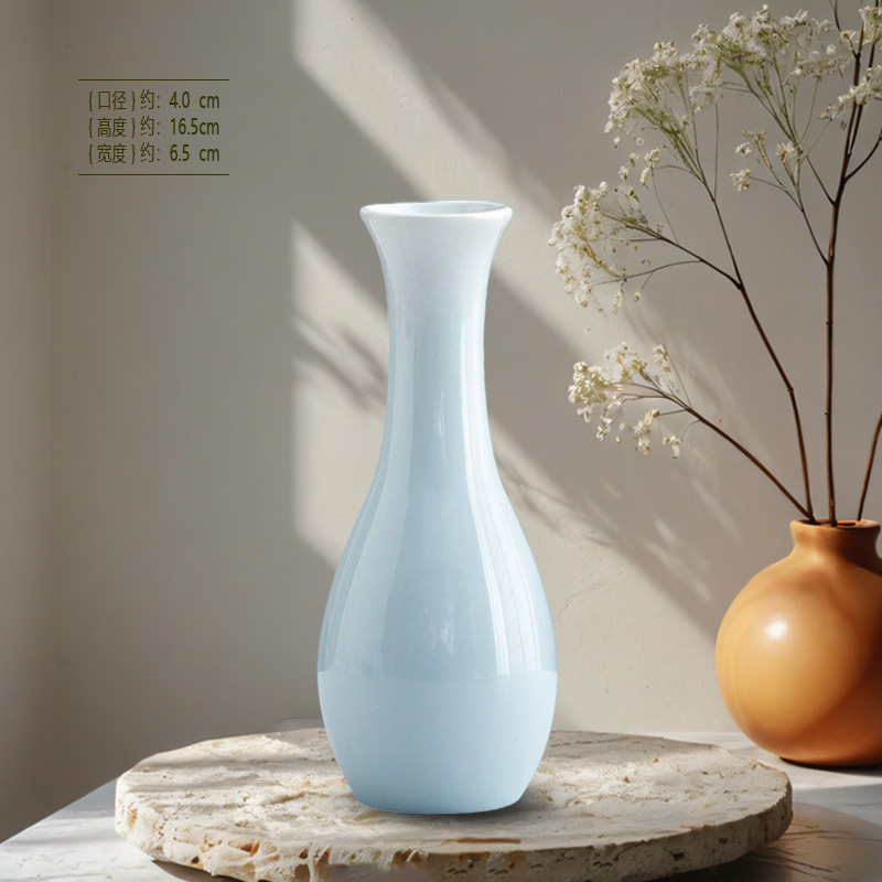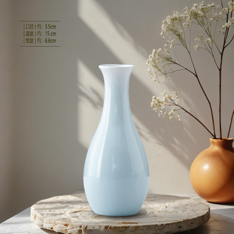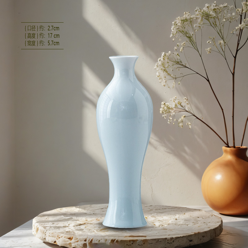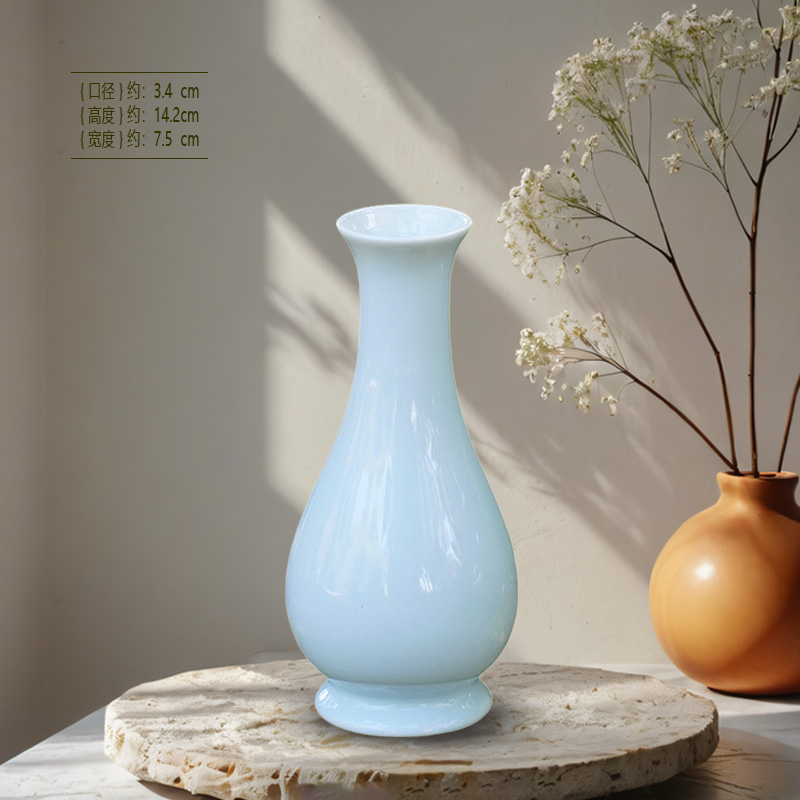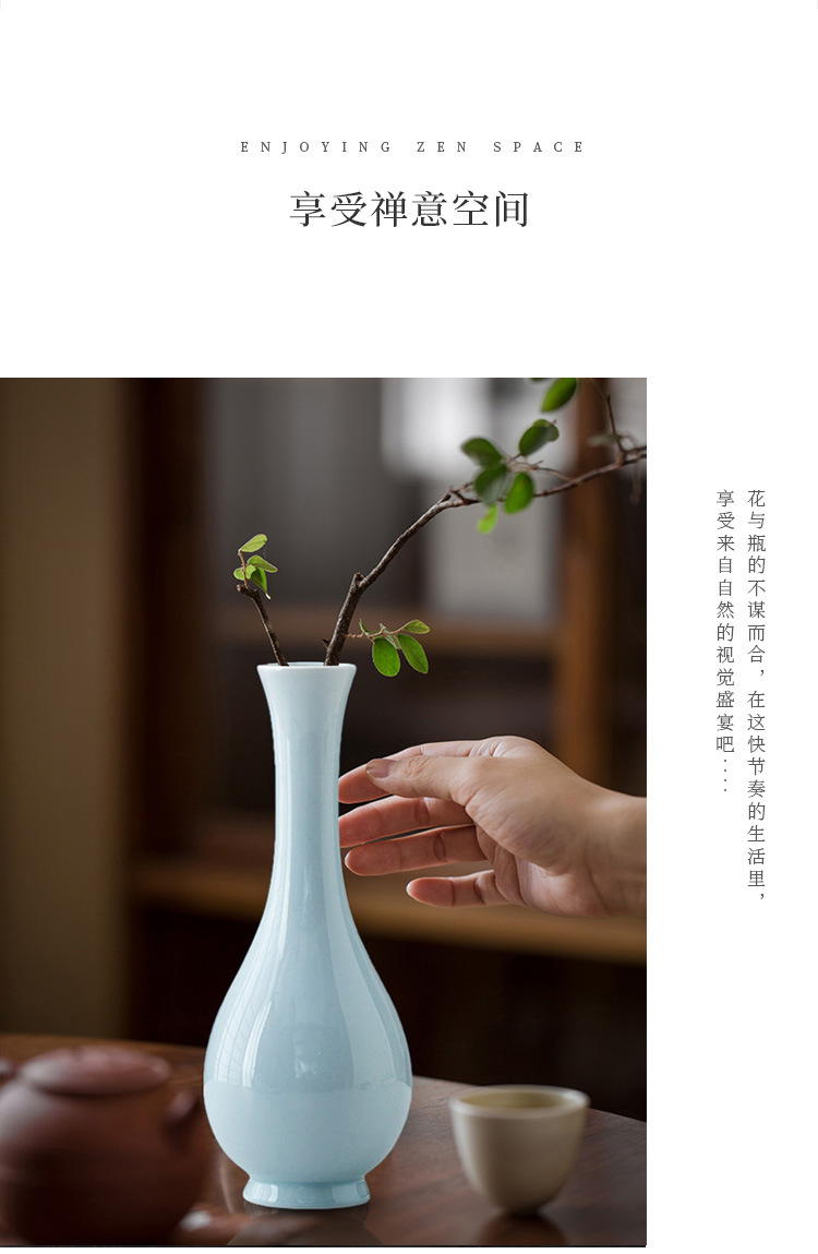 청자 꽃병 꽃꽂이 관음 얇은 입병 긴 목 세라믹 장식품 선 데스크탑 복고풍 옥 꽃병 백자 작은 병스토어 가기