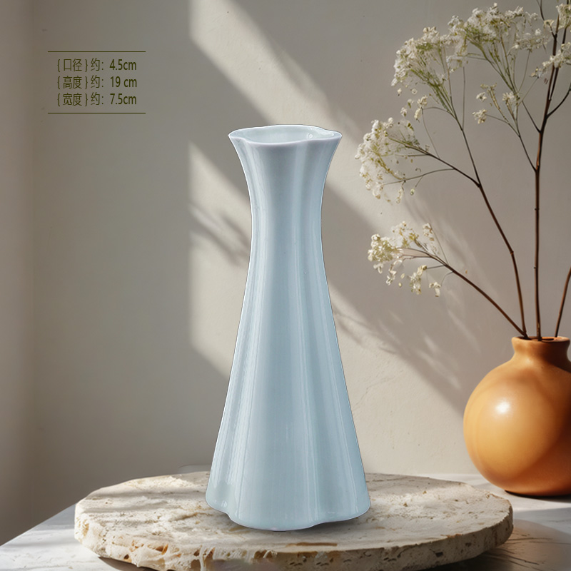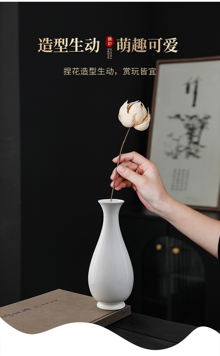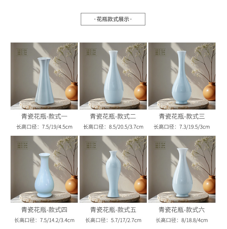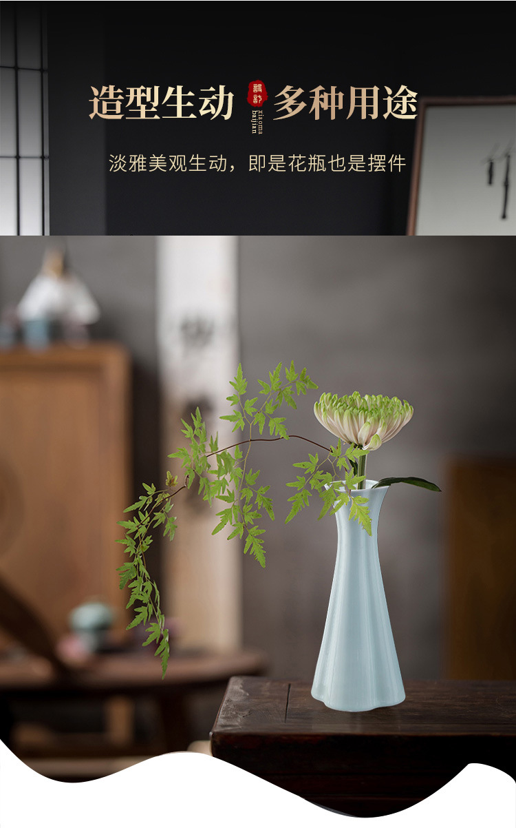 청자 꽃병 꽃꽂이 관음 얇은 입병 긴 목 세라믹 장식품 선 데스크탑 복고풍 옥 꽃병 백자 작은 병스토어 가기