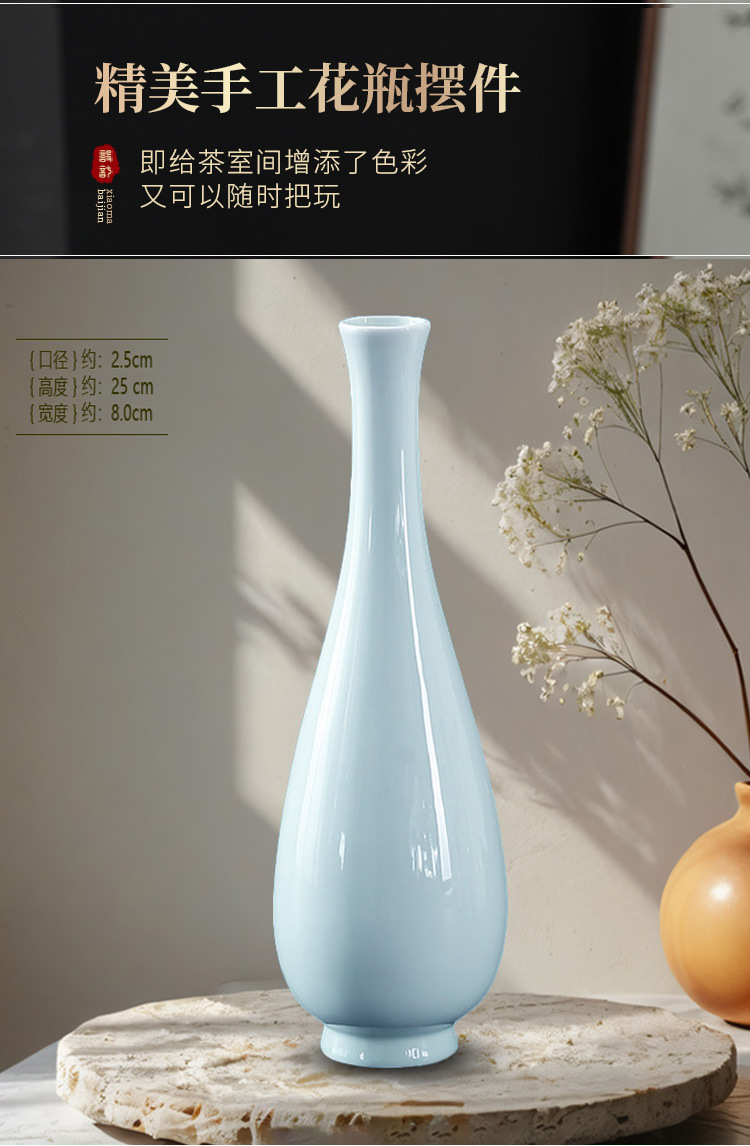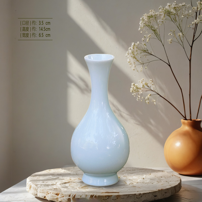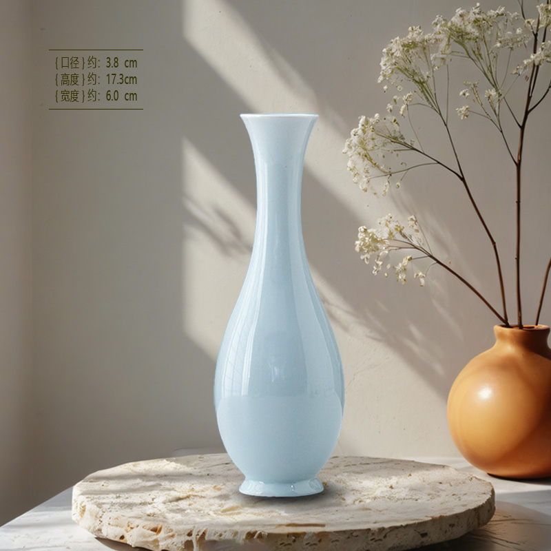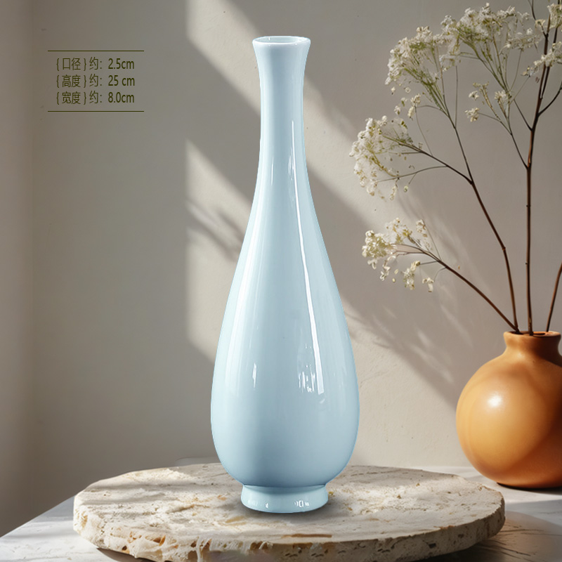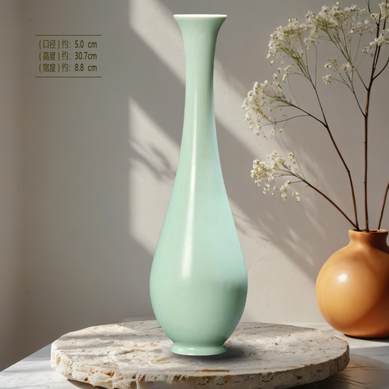청자 꽃병 꽃꽂이 관음 얇은 입병 긴 목 세라믹 장식품 선 데스크탑 복고풍 옥 꽃병 백자 작은 병