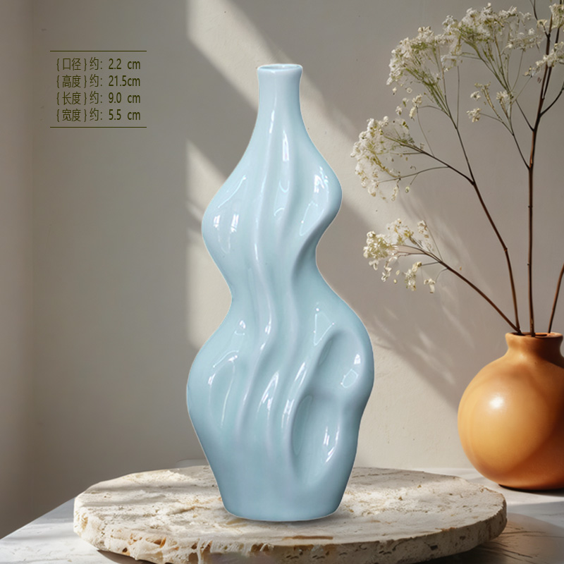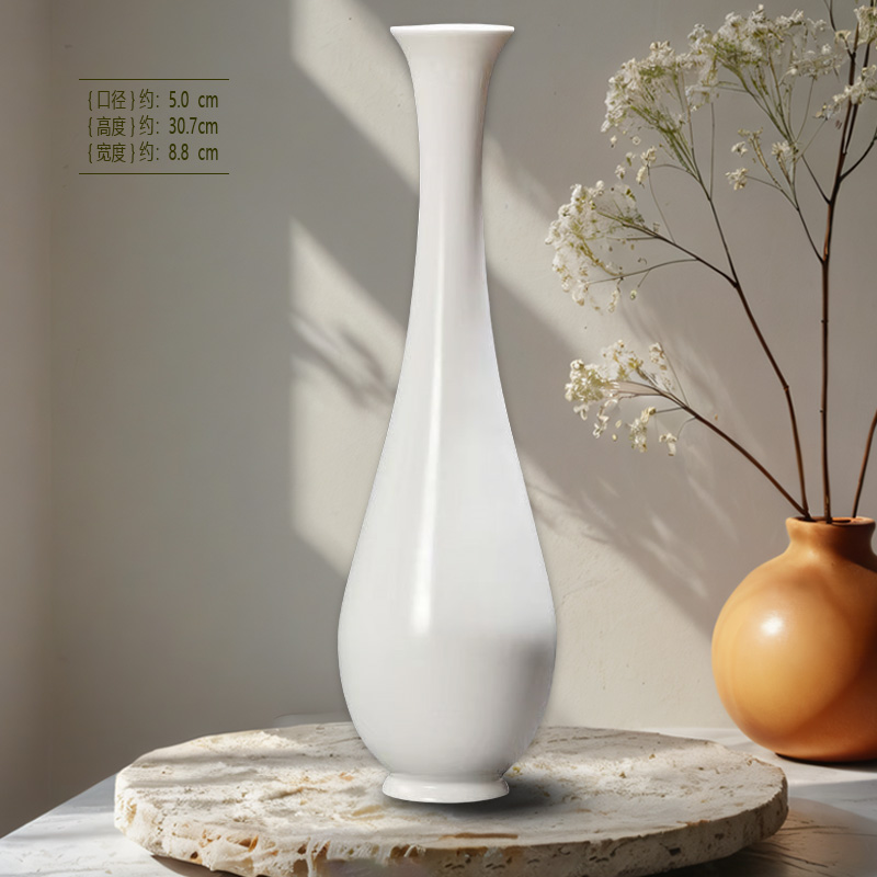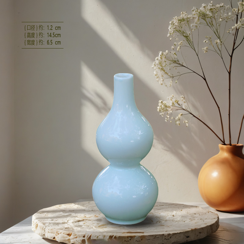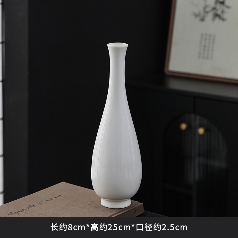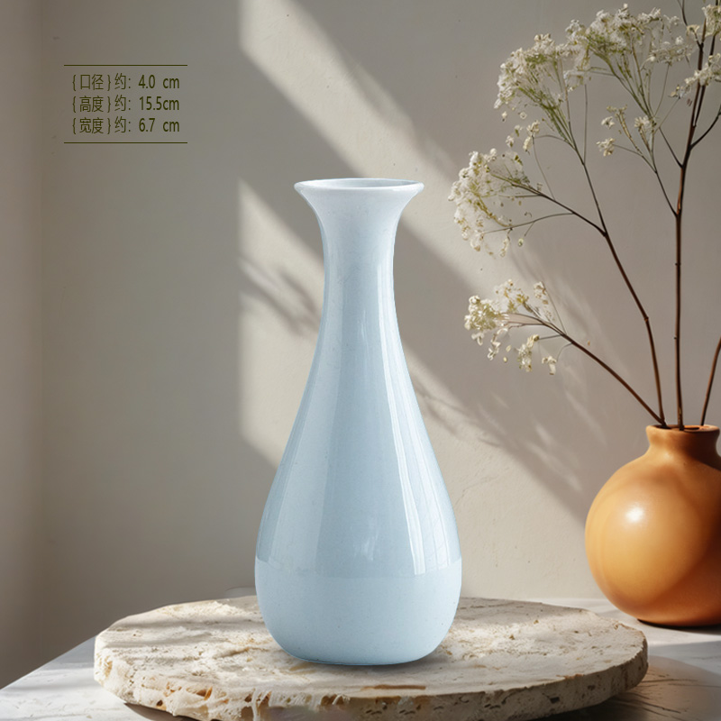 청자 꽃병 꽃꽂이 관음 얇은 입병 긴 목 세라믹 장식품 선 데스크탑 복고풍 옥 꽃병 백자 작은 병