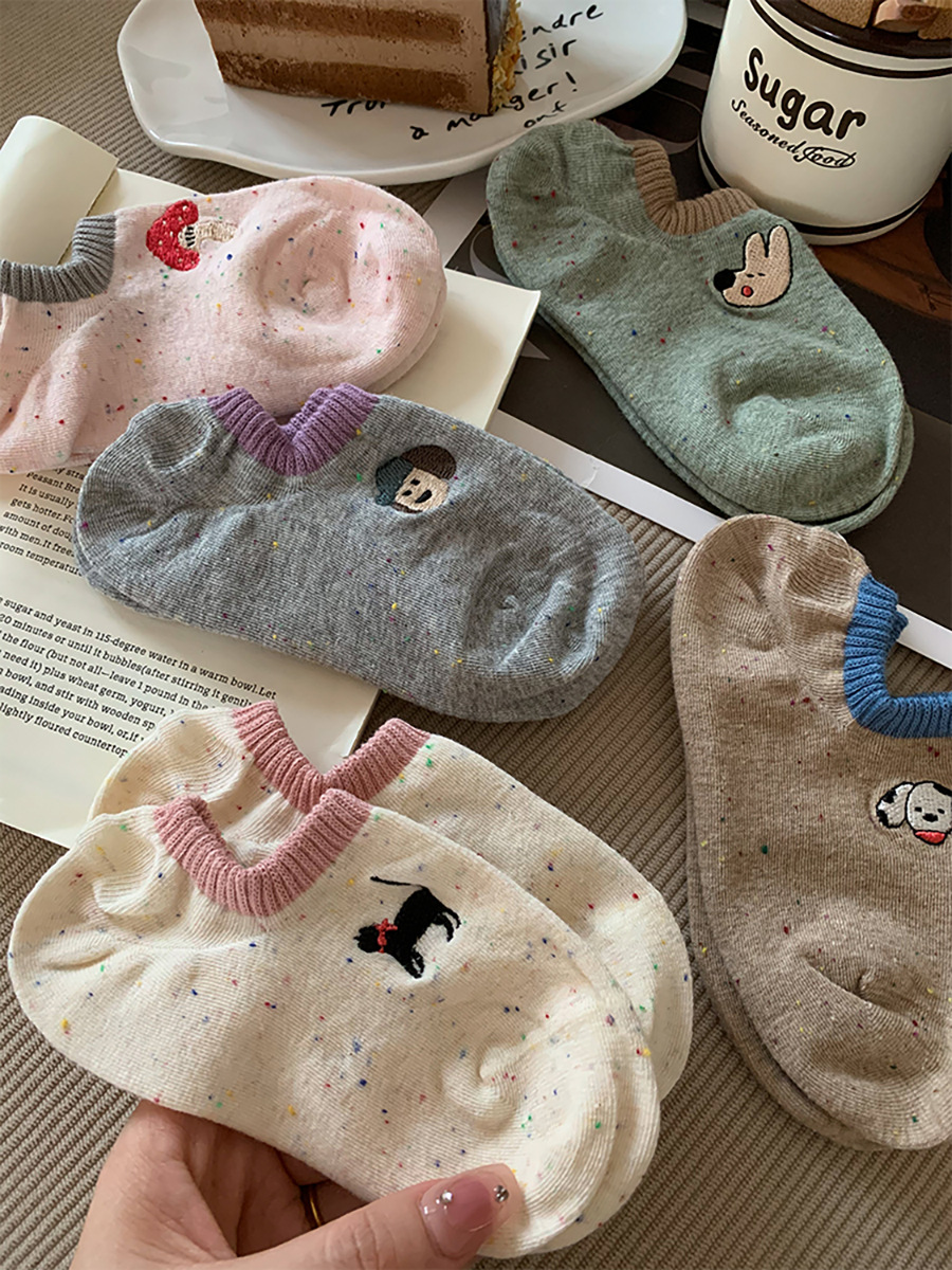 귀여운 양말 여성 보트 양말 여름 포인트 원사 만화 자수 실리콘 미끄럼 방지 보이지 않는 얇은면 양말스토어 가기