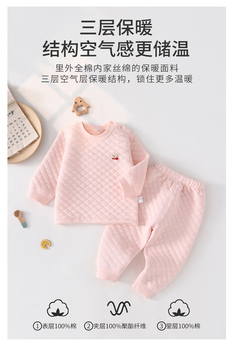 클래스 A 뼈없는 아기 보온 속옷 스플릿 슈트 봄, 가을, 겨울 3 층 따뜻한 어린이 면화 가을 옷과 긴 바지