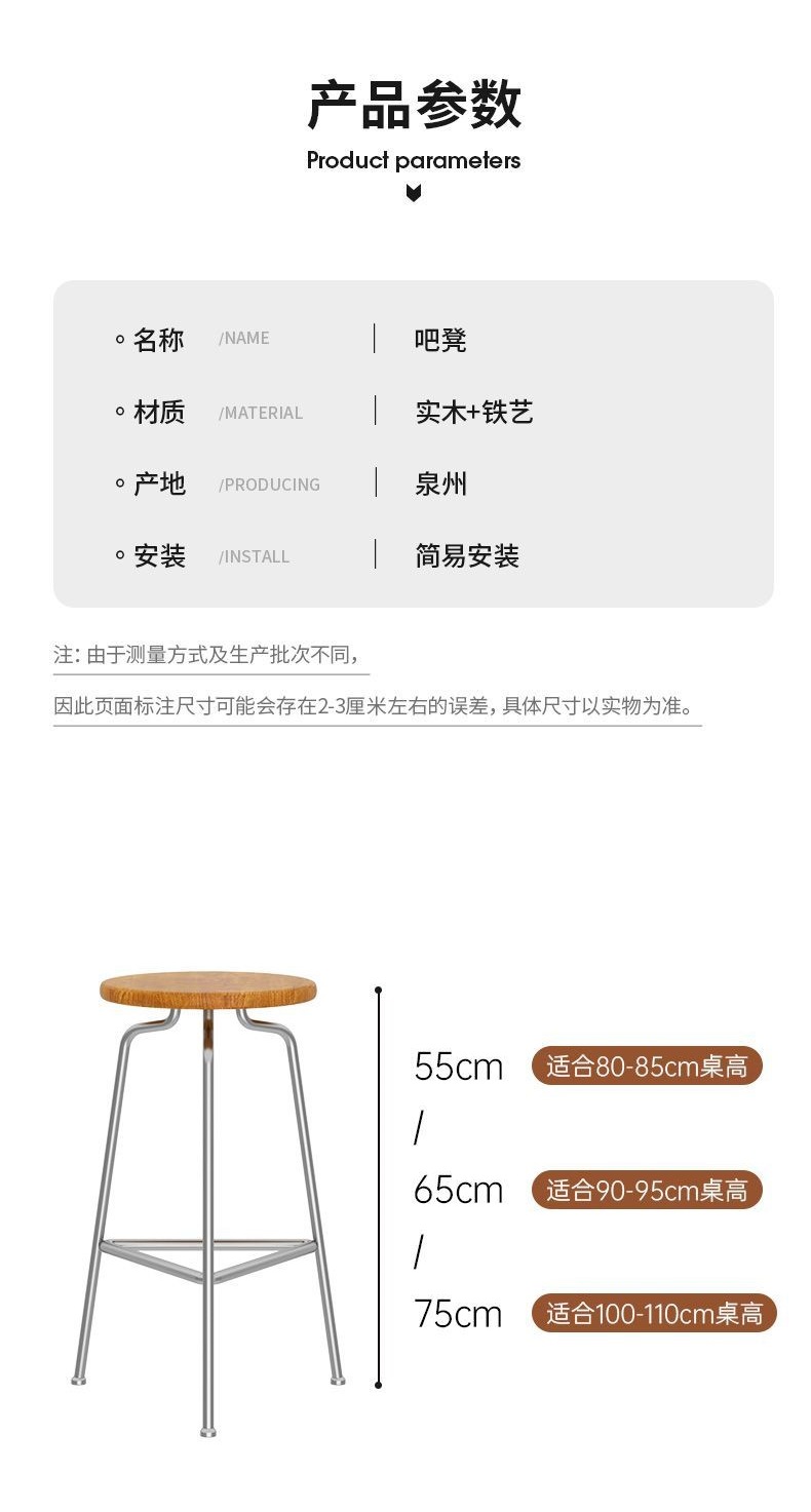 디자이너 바 의자 철제 하이 바 의자 단단한 나무 일본식 프론트 데스크 바 의자 북유럽 개미 의자 홈 심플