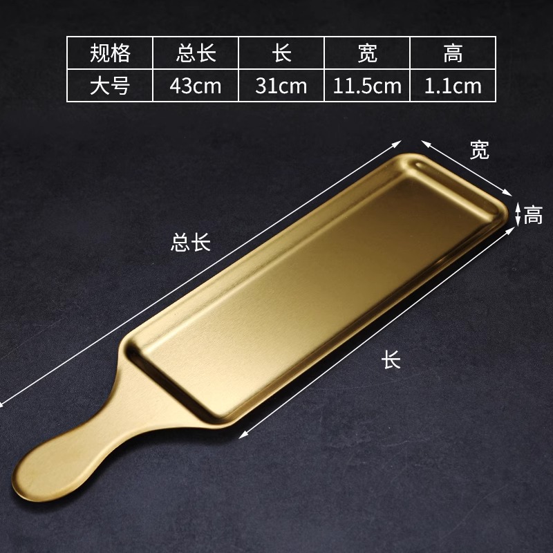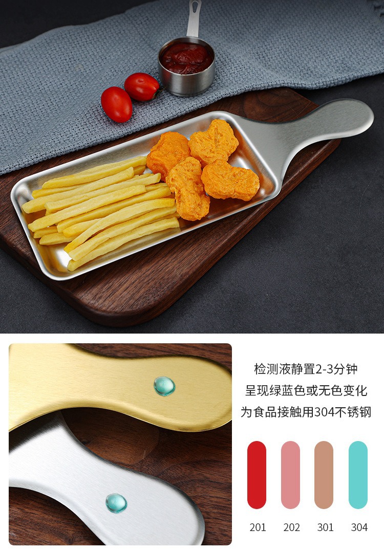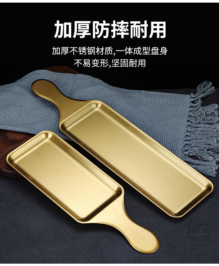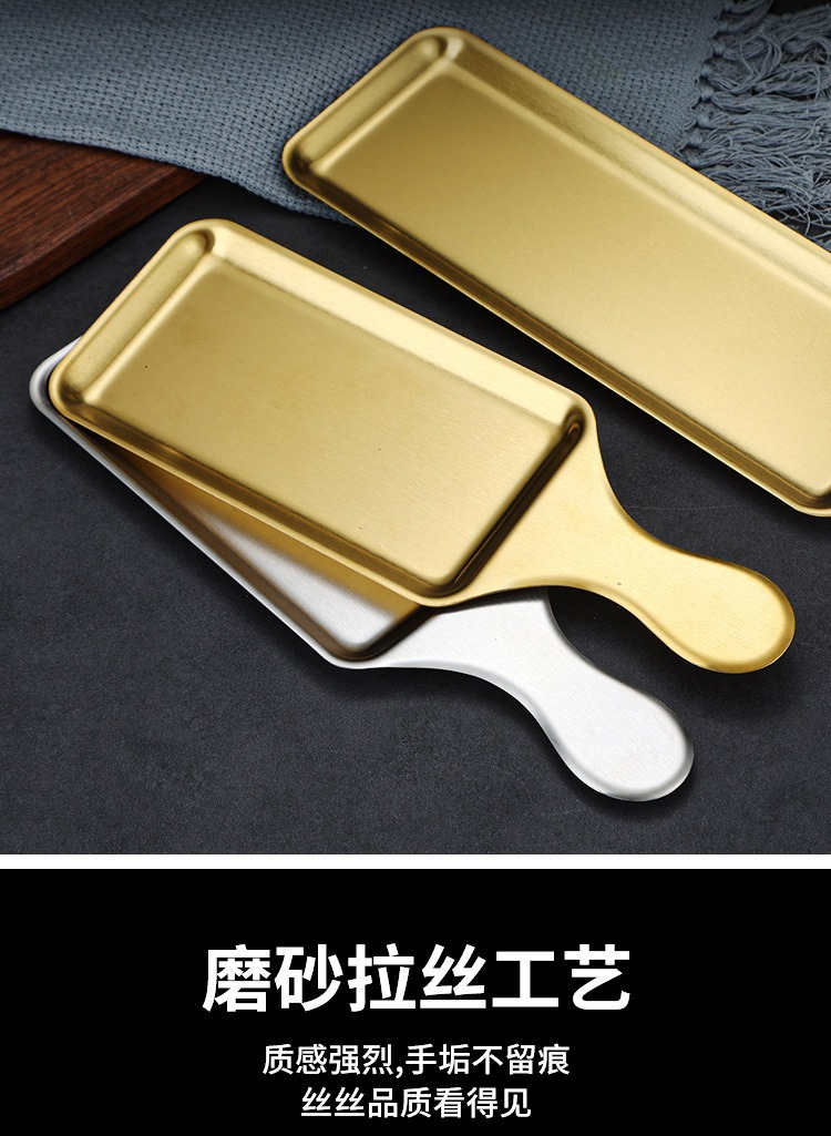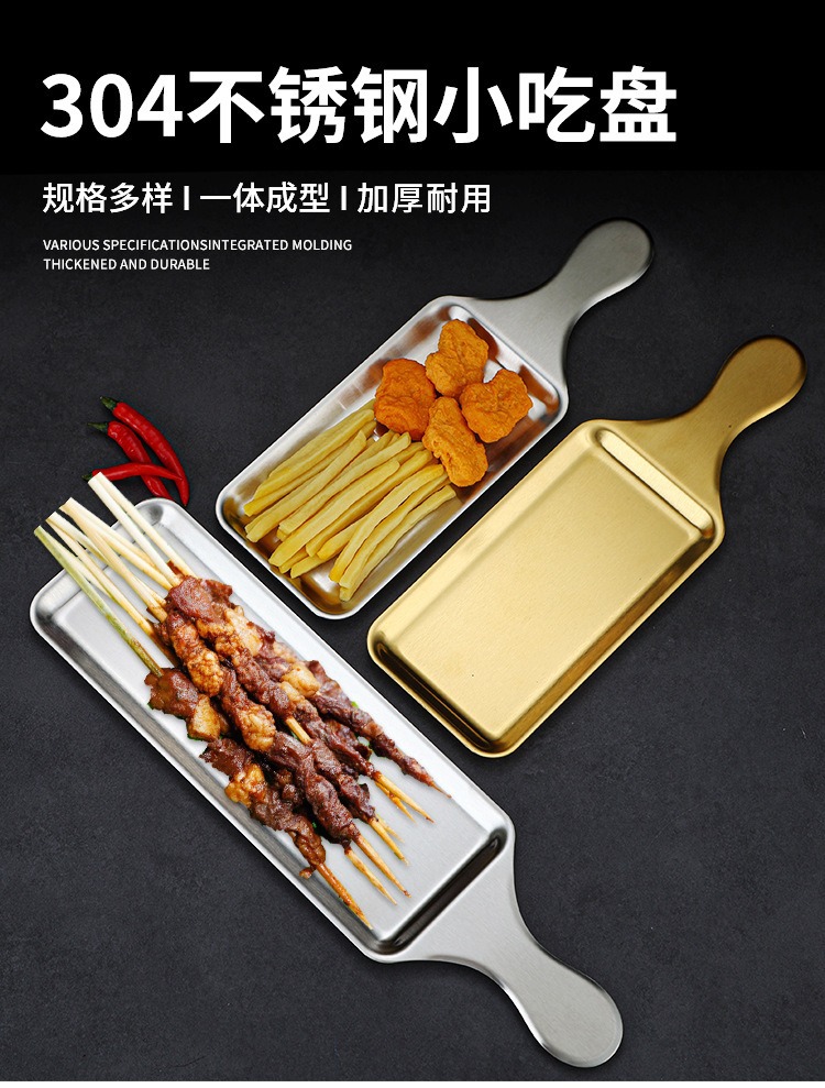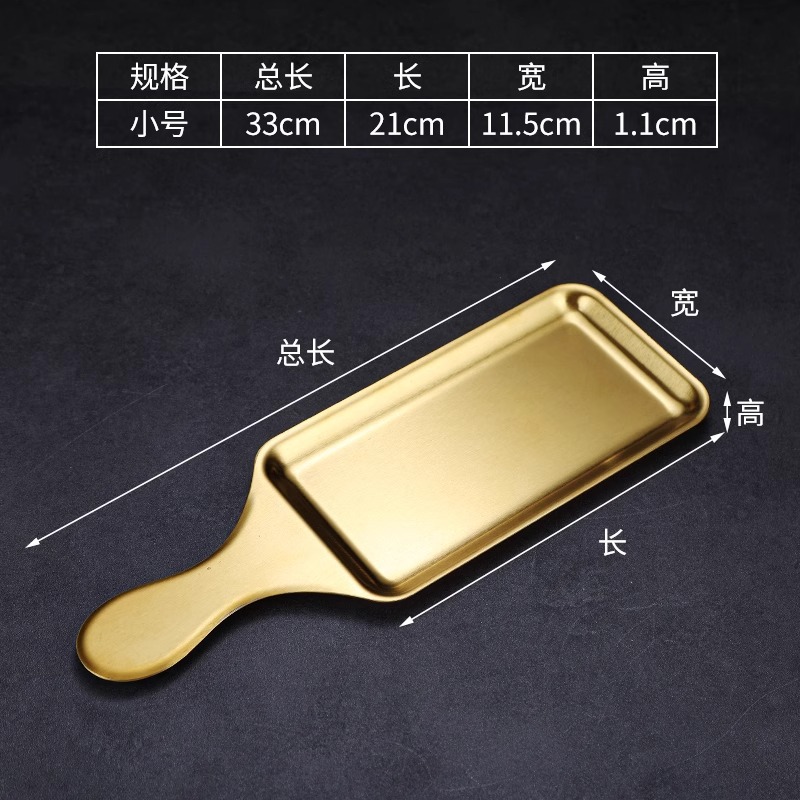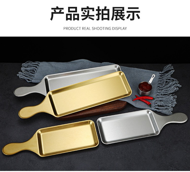 손잡이가 있는 한국식 창작 스테인레스 스틸 접시, 직사각형 서양식 스테이크 접시, 금색 바닥이 평평한 바베큐 접시 트레이, 스낵 접시스토어 가기
