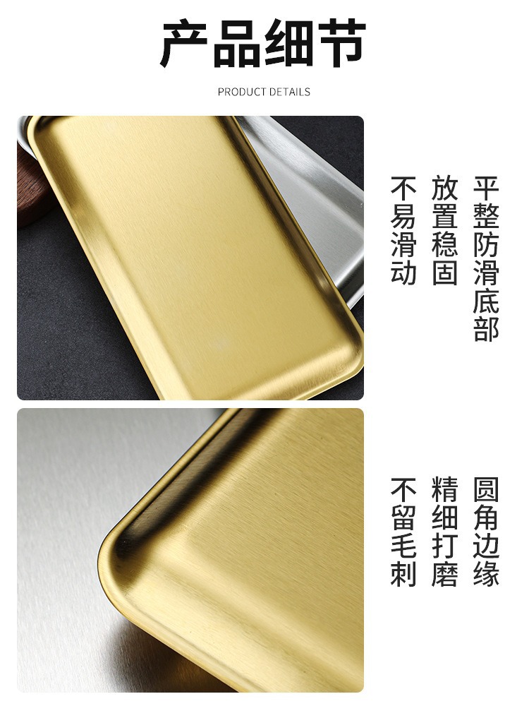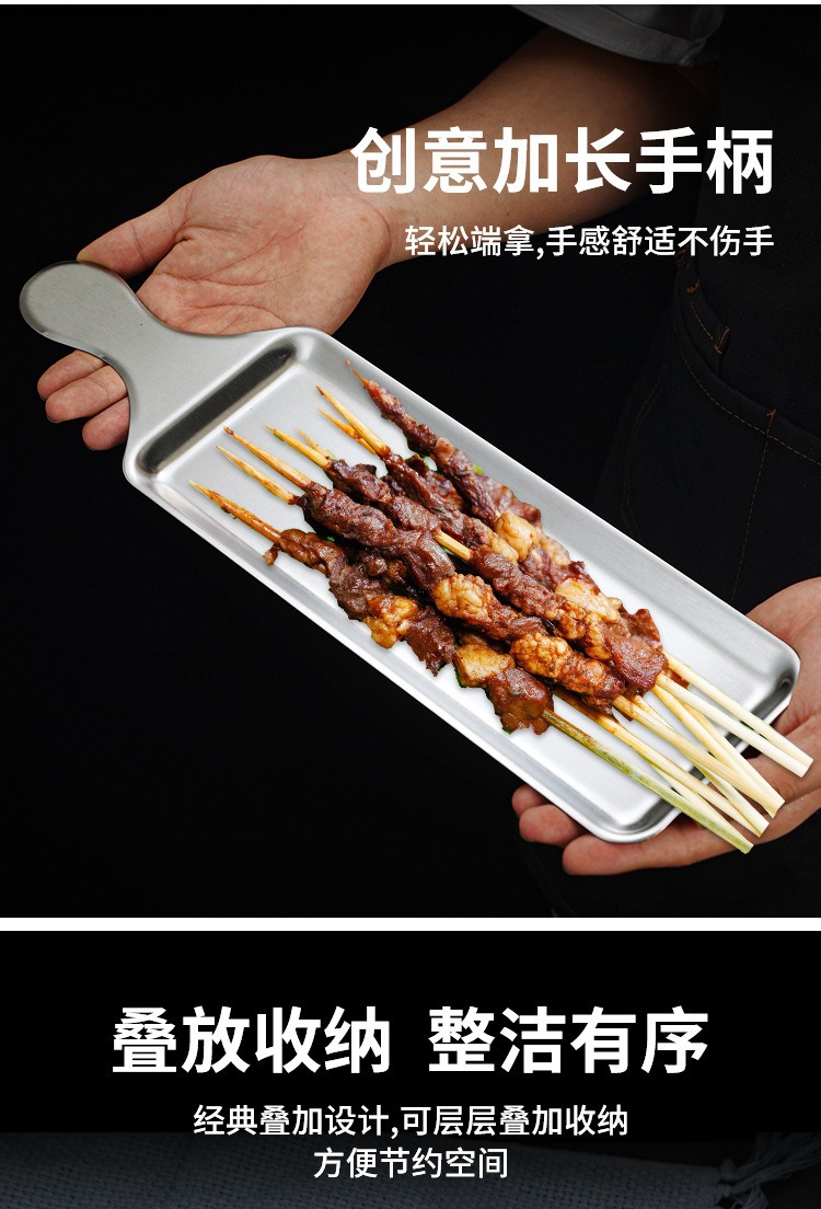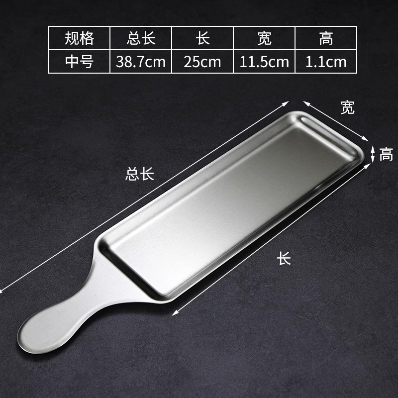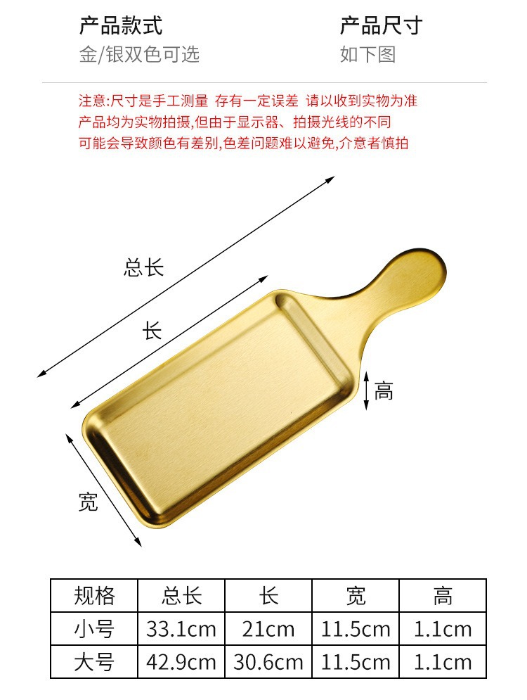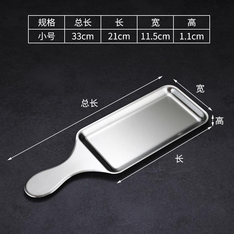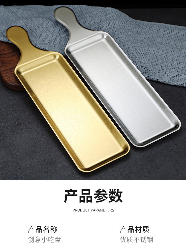 손잡이가 있는 한국식 창작 스테인레스 스틸 접시, 직사각형 서양식 스테이크 접시, 금색 바닥이 평평한 바베큐 접시 트레이, 스낵 접시스토어 가기