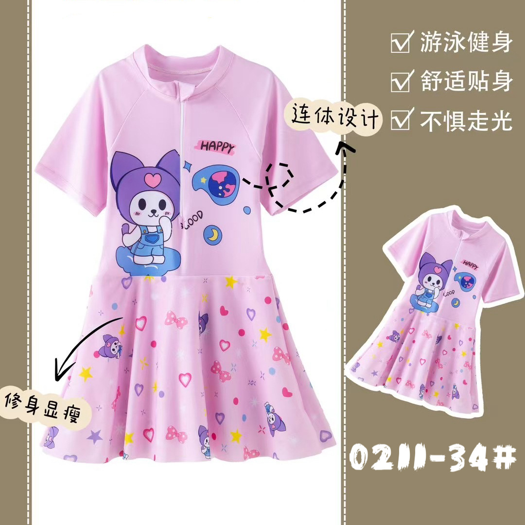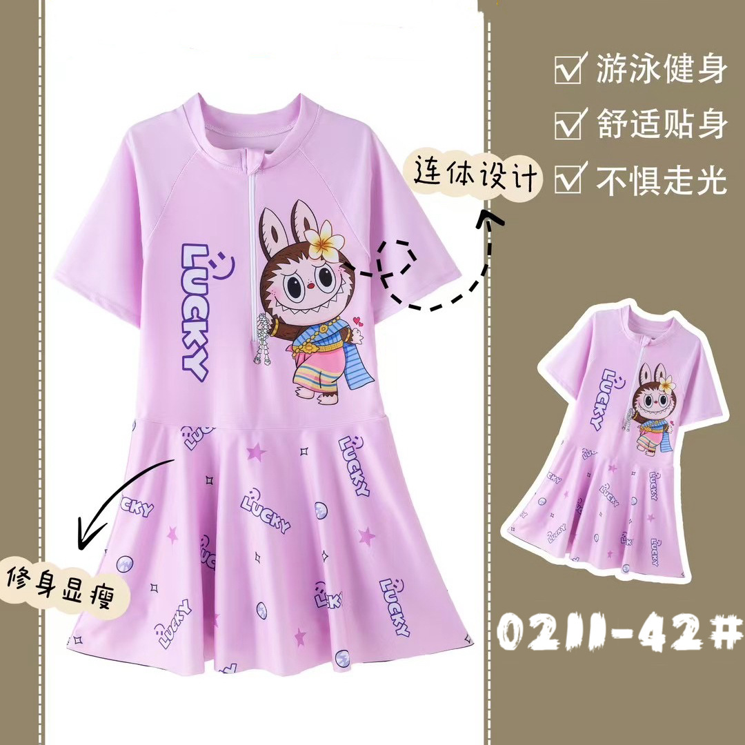 여름 새 여자 원피스 수영복 소형, 중형 및 대형 어린이를 위한 속건성, 통기성 및 귀여운 만화 온천 해변 수영 장비