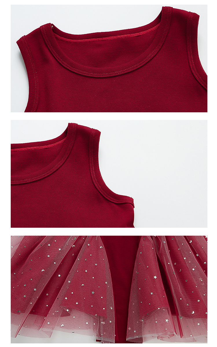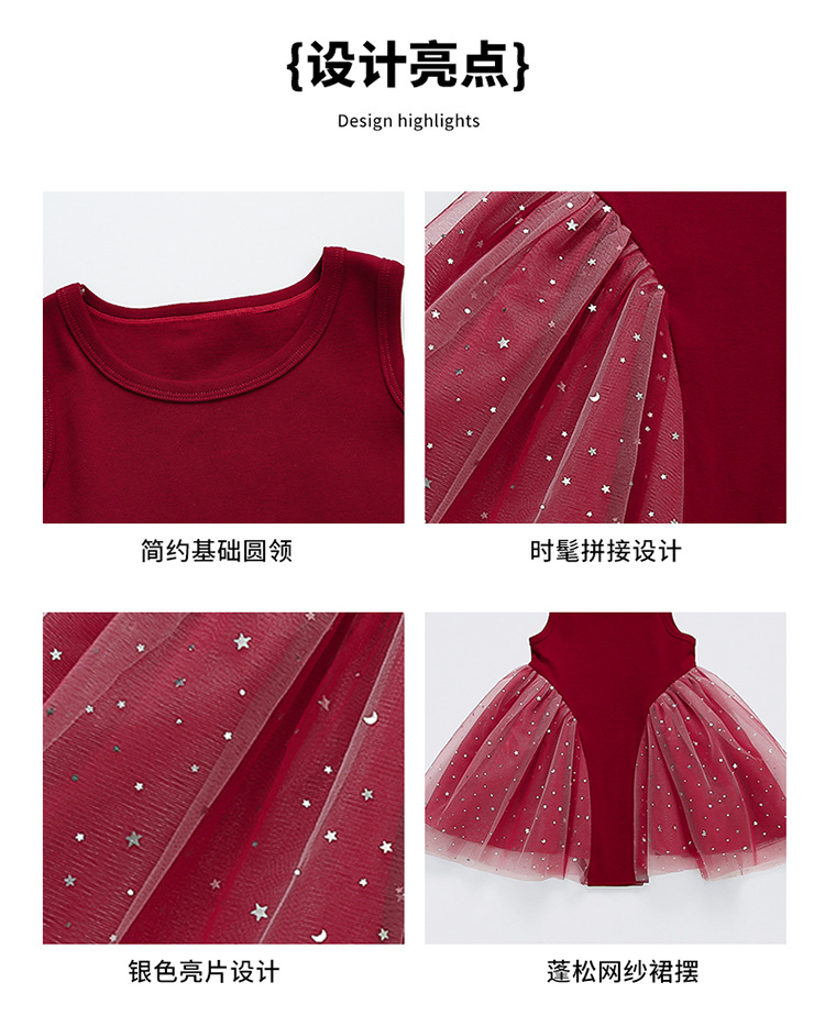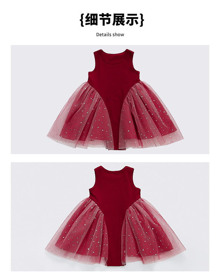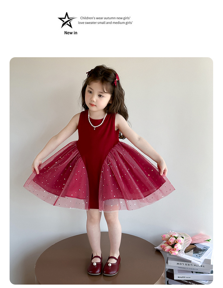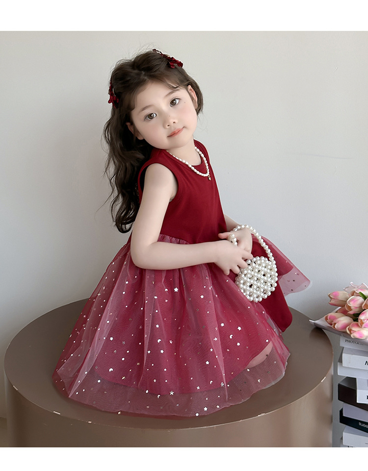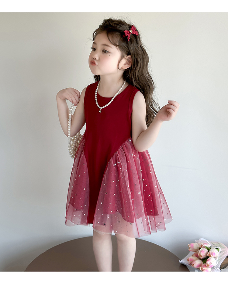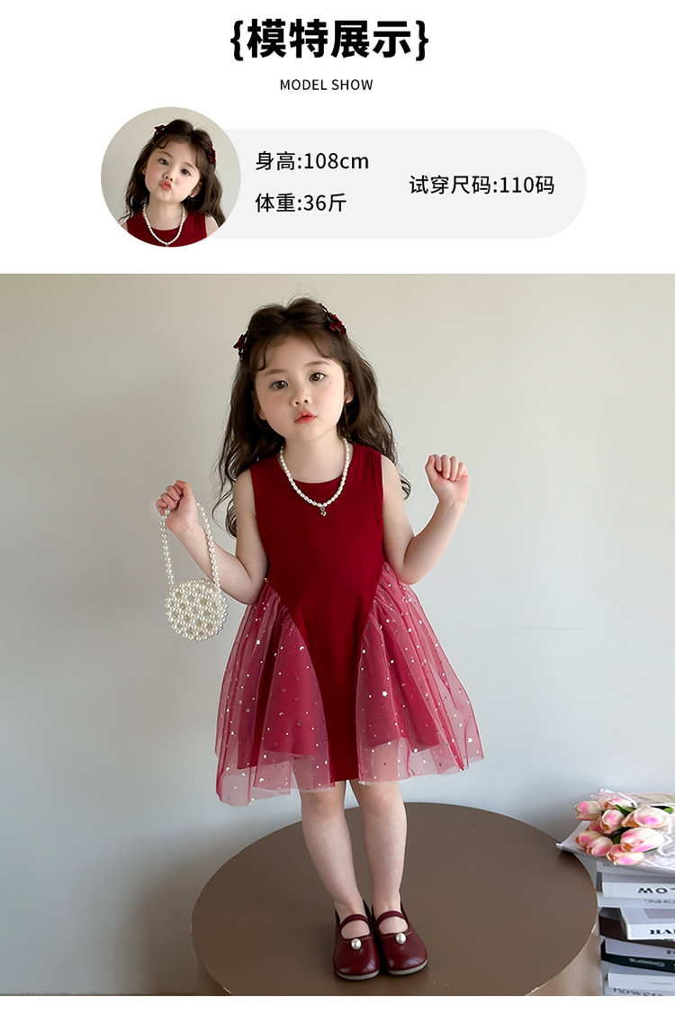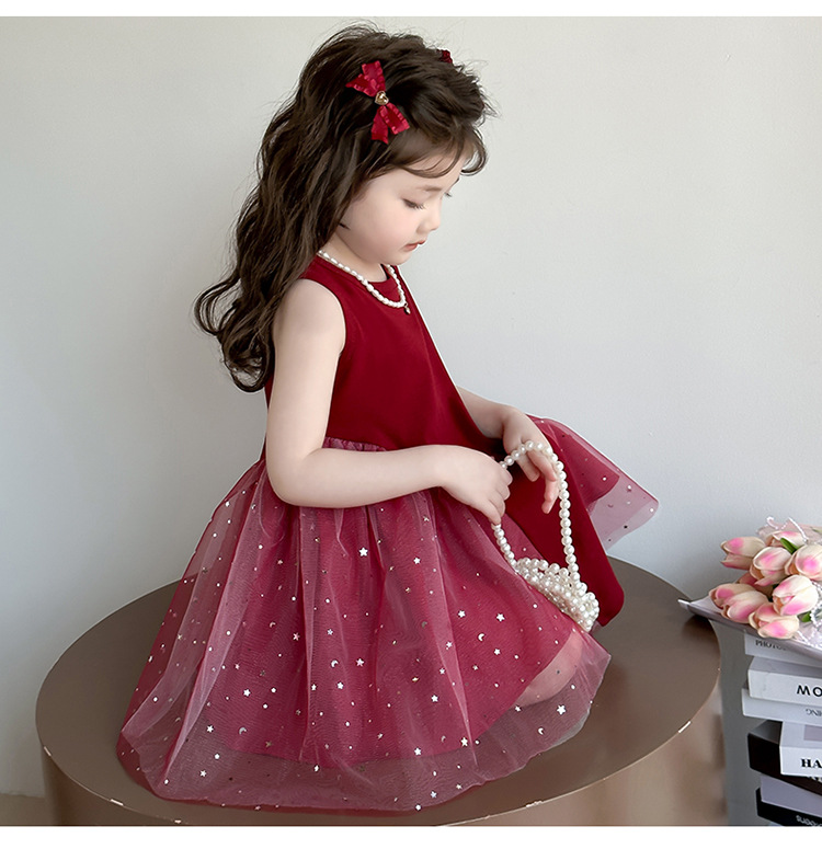 소녀 빛나는 빨간 베일 원피스 2025 여름 새로운 패션 소녀 세련된 공주 원피스 중소 어린이 원피스스토어 가기