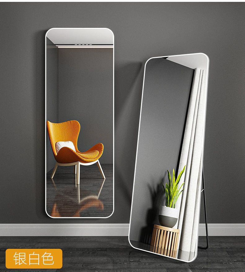 전신 바닥 거울 인터넷 연예인 간단한 소녀 둥근 모서리 가정용 피팅 거울 수평 드레싱 학생 기숙사 의류 매장