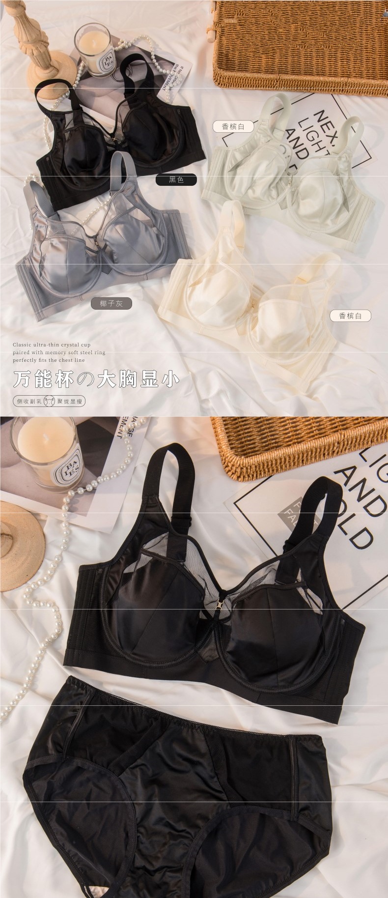 lansefeier 블루 죄 여성용 브라 [큰 가슴 컵] 슬림하고 가벼운 럭셔리 새틴 속옷스토어 가기