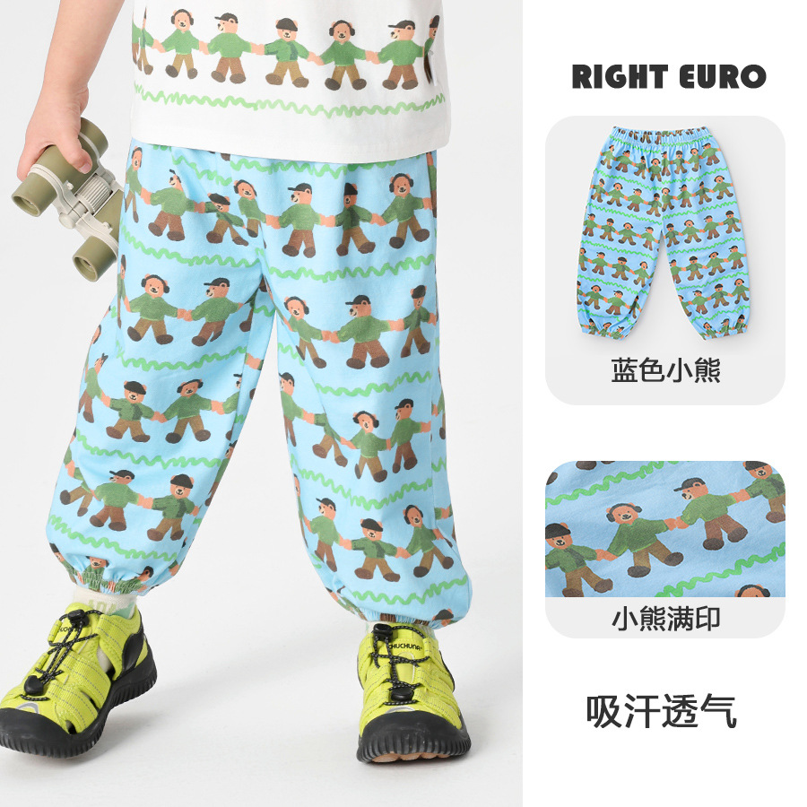 오른쪽 유럽 소년의 모기 방지 바지 여름 긴 바지 2025 새로운 아동복 어린이 아기 작은 소년 여름 얇은스토어 가기