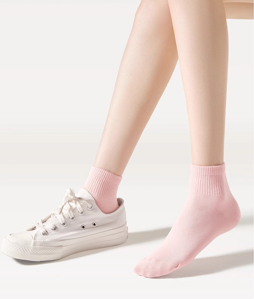 여성용 여름 단색 짧은 양말, 순면 얇은 일본 학생 스포츠 컬러 양말, 스포츠 봄, 가을 중간 양말스토어 가기