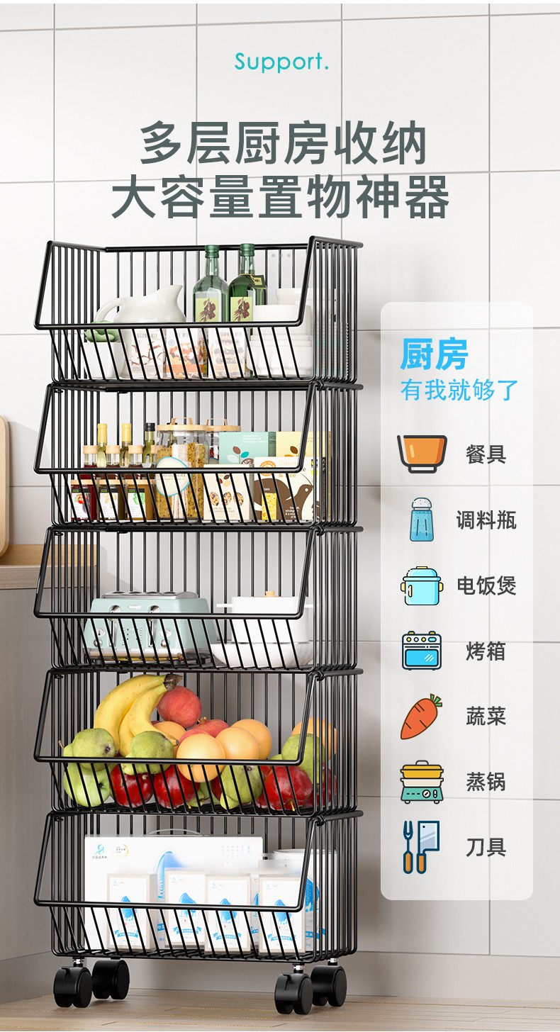 주방 수납 선반, 바닥에서 천장까지 이어지는 다층 트롤리, 야채 바구니, 야채 바구니 수납, 욕실 수납스토어 가기