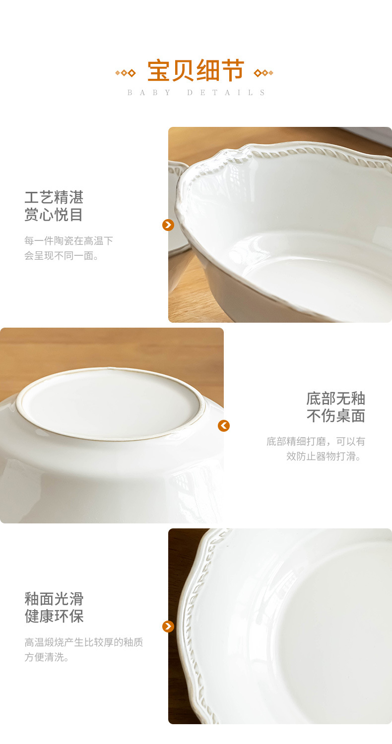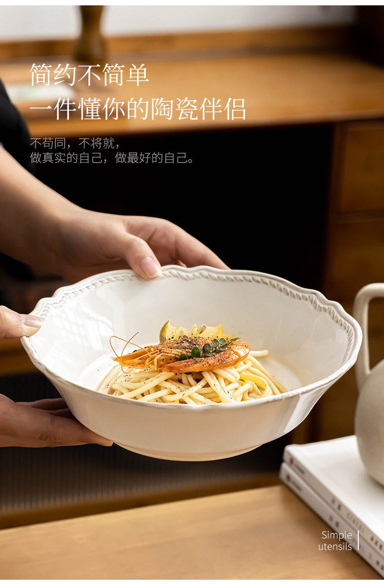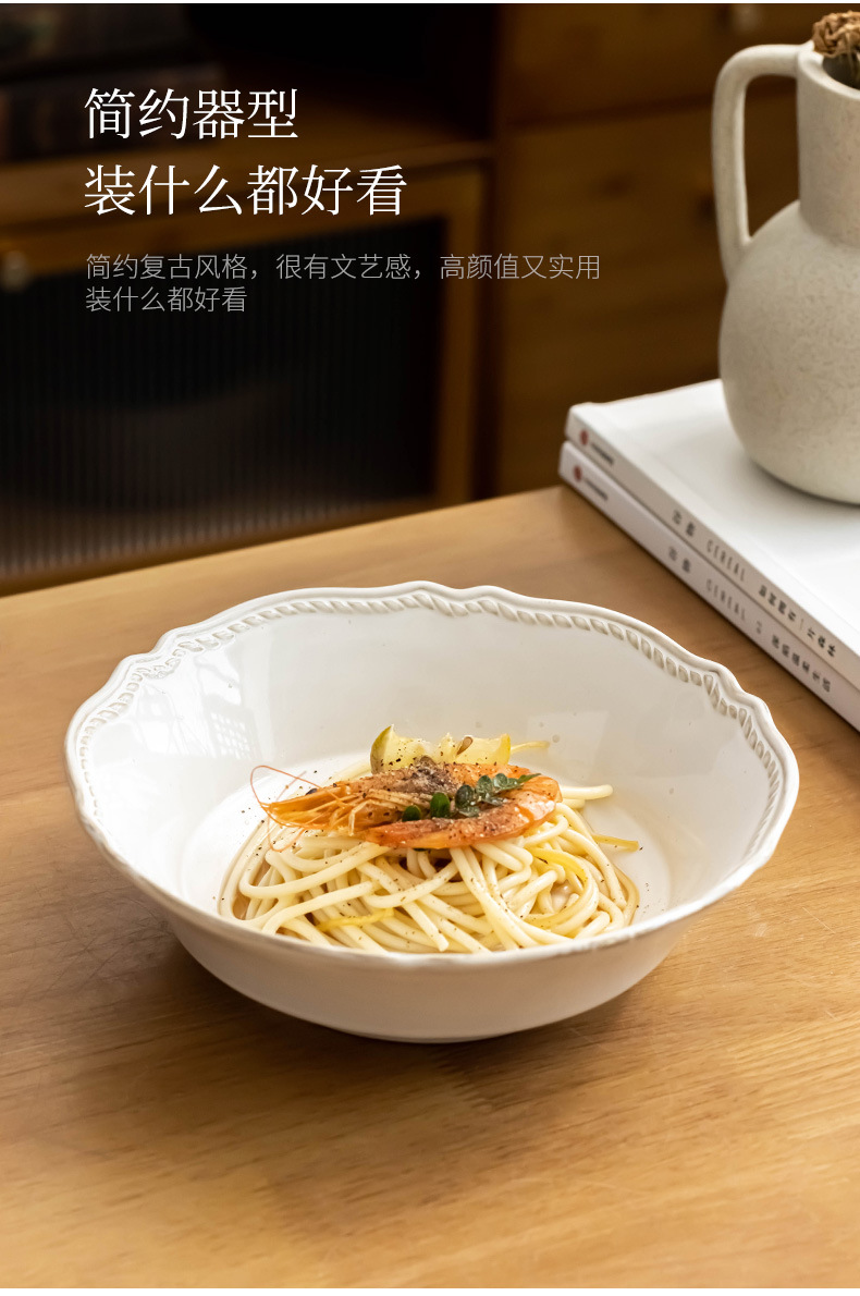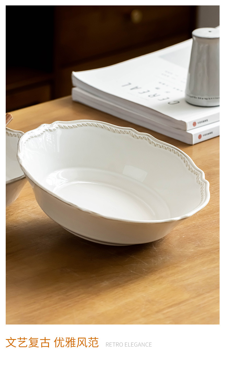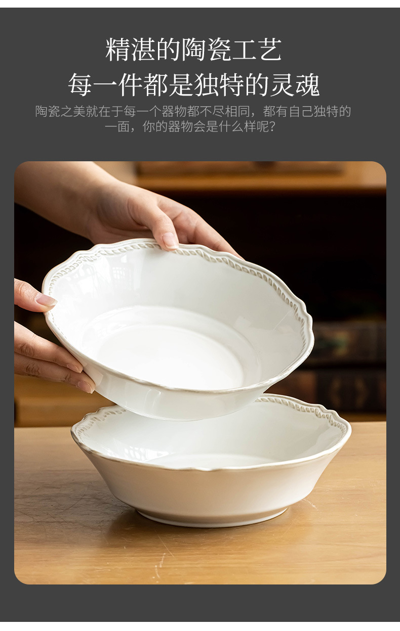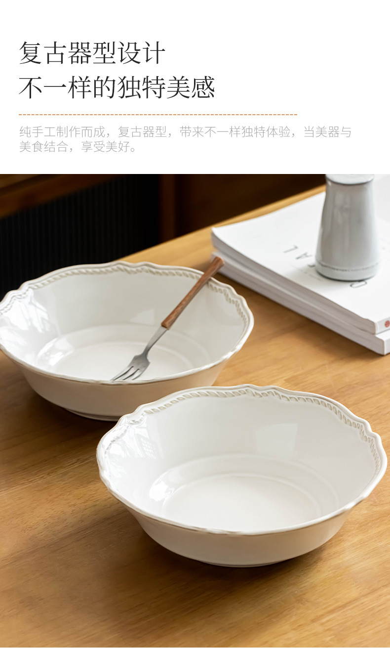 궁전 스타일 구호 큰 수프 그릇 프랑스 레이스 세라믹 그릇 가정용 접시 그릇 샐러드 그릇 국수 그릇 도매 식기 도매